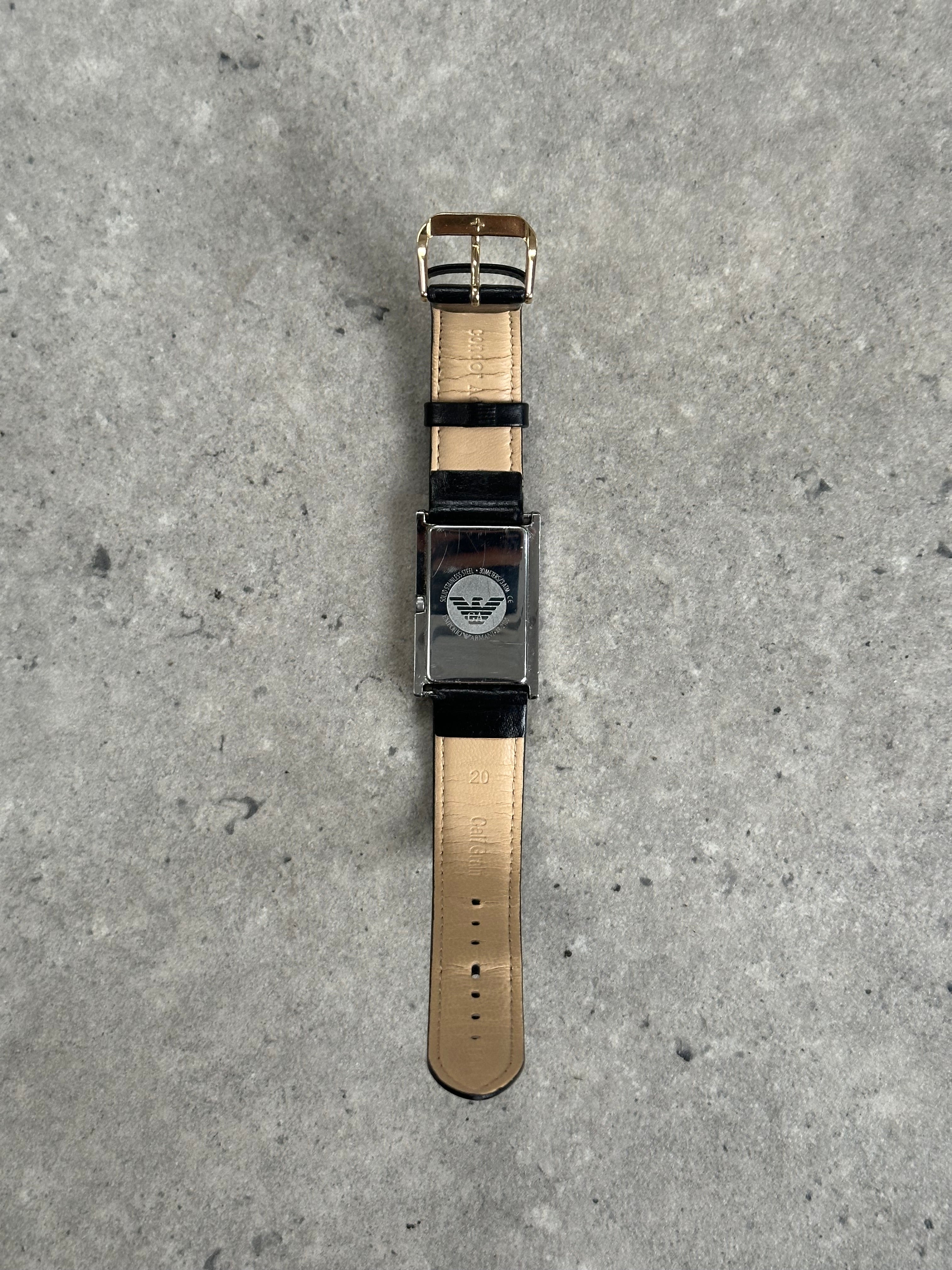 Emporio Armani 2000s Rectangle Stainless Steel Leather Watch