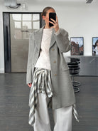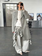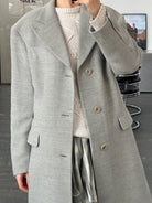 Gianfranco Ferre 1990s mid length tailored coat in a soft grey tone, designed with Ferré’s signature sculptural lapel shape and clean minimal lines. A refined everyday outerwear piece with a quiet luxury feel.