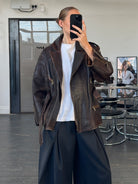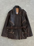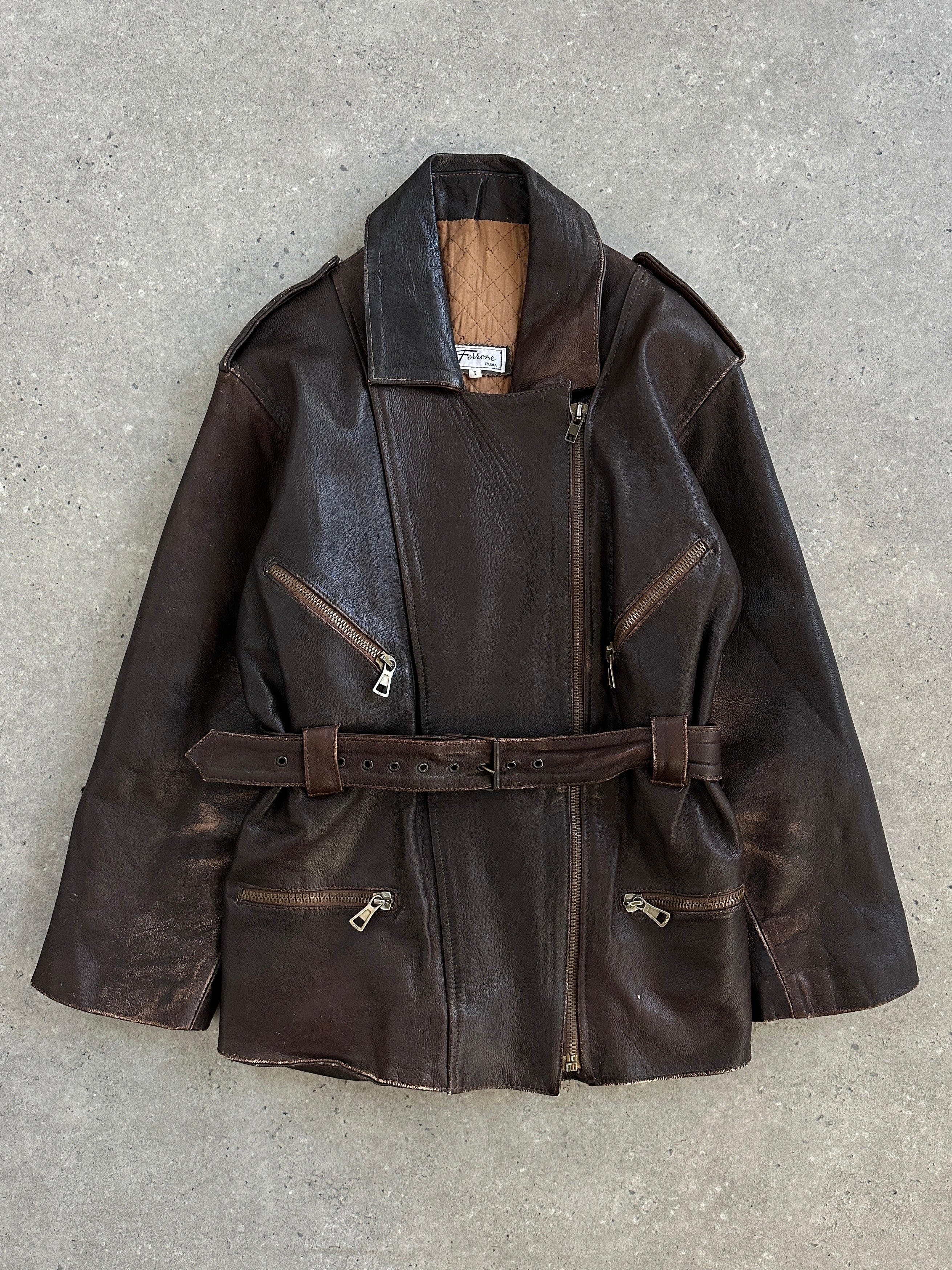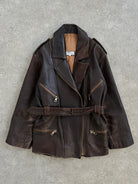 Italian Vintage 1990s Aged Belted Leather Jacket - M