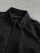 Vintage 2000s structured black wool bomber jacket featuring shoulder epaulettes, elasticated hem panels and a clean zip front. Finished in a deep black tone with a smooth lining marked Esercito Italiano, giving it a refined Italian vintage military feel.