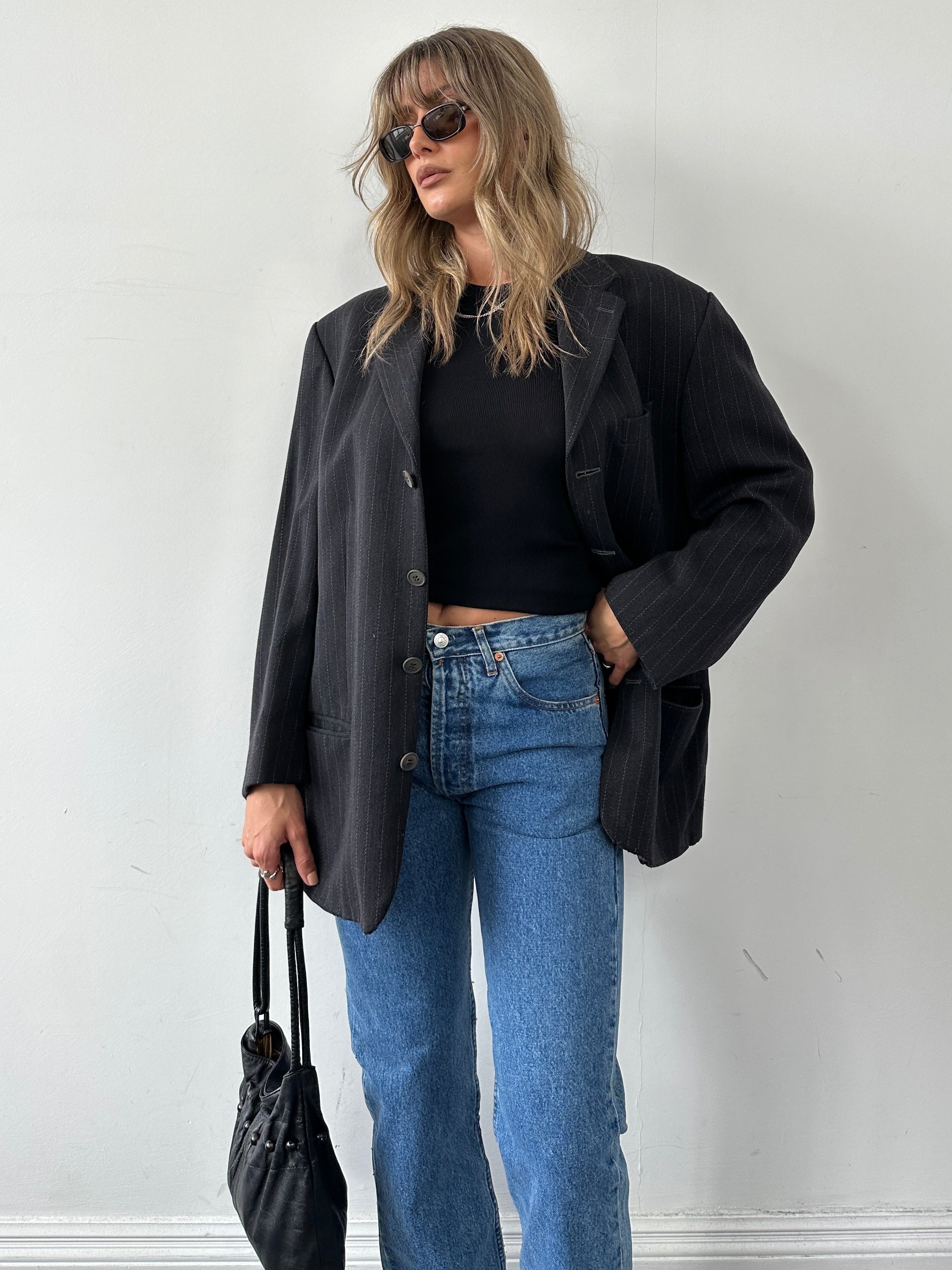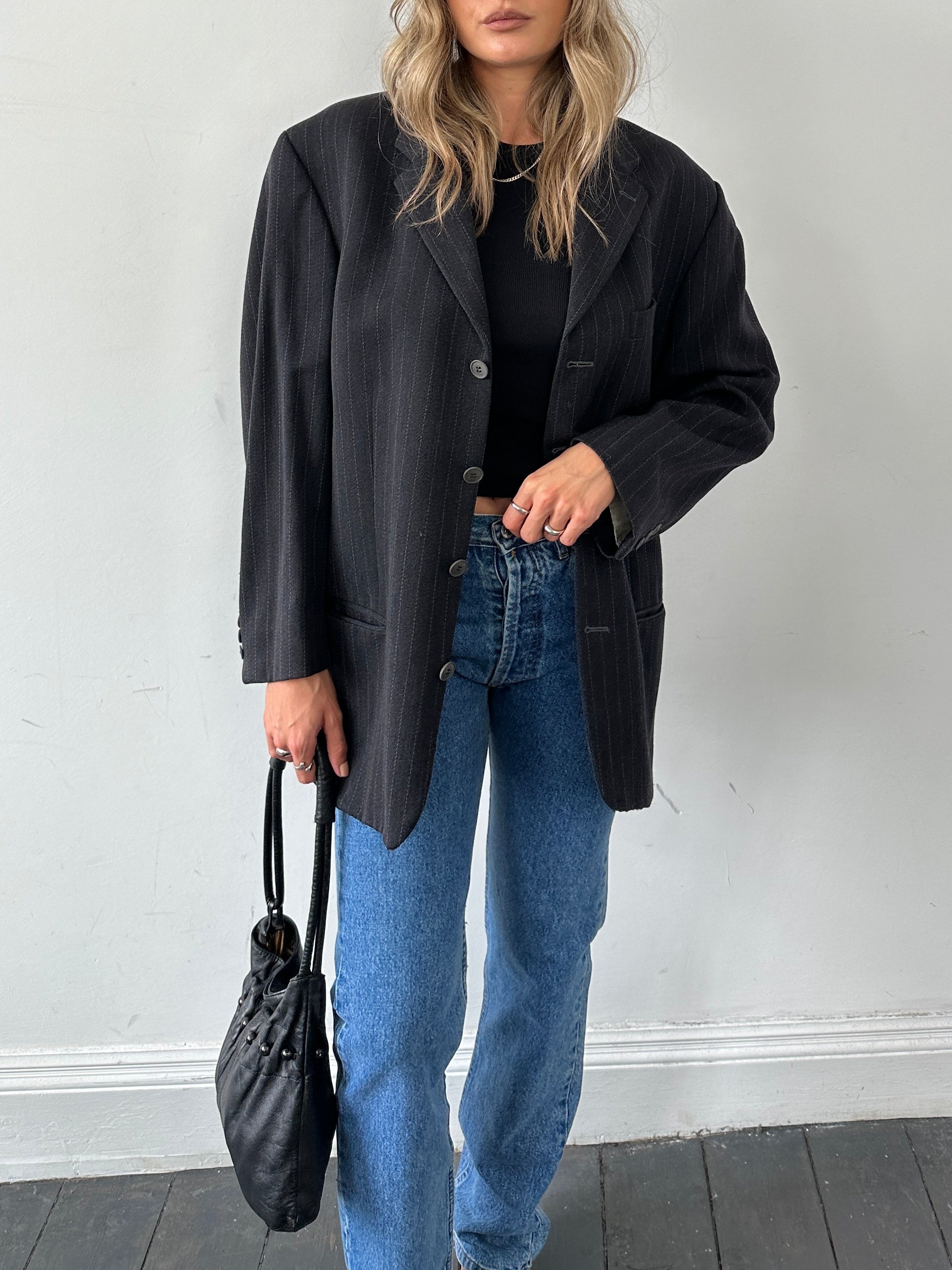 Kenzo Wool Pinstripe Single Breasted Blazer - 44R