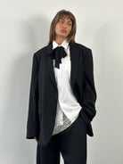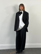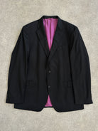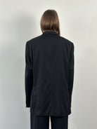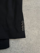 A vintage 1990s René Lezard single breasted blazer in a deep black tone cut in pure Loro Piana wool. A clean structured silhouette with a soft refined drape and quietly elevated finish.