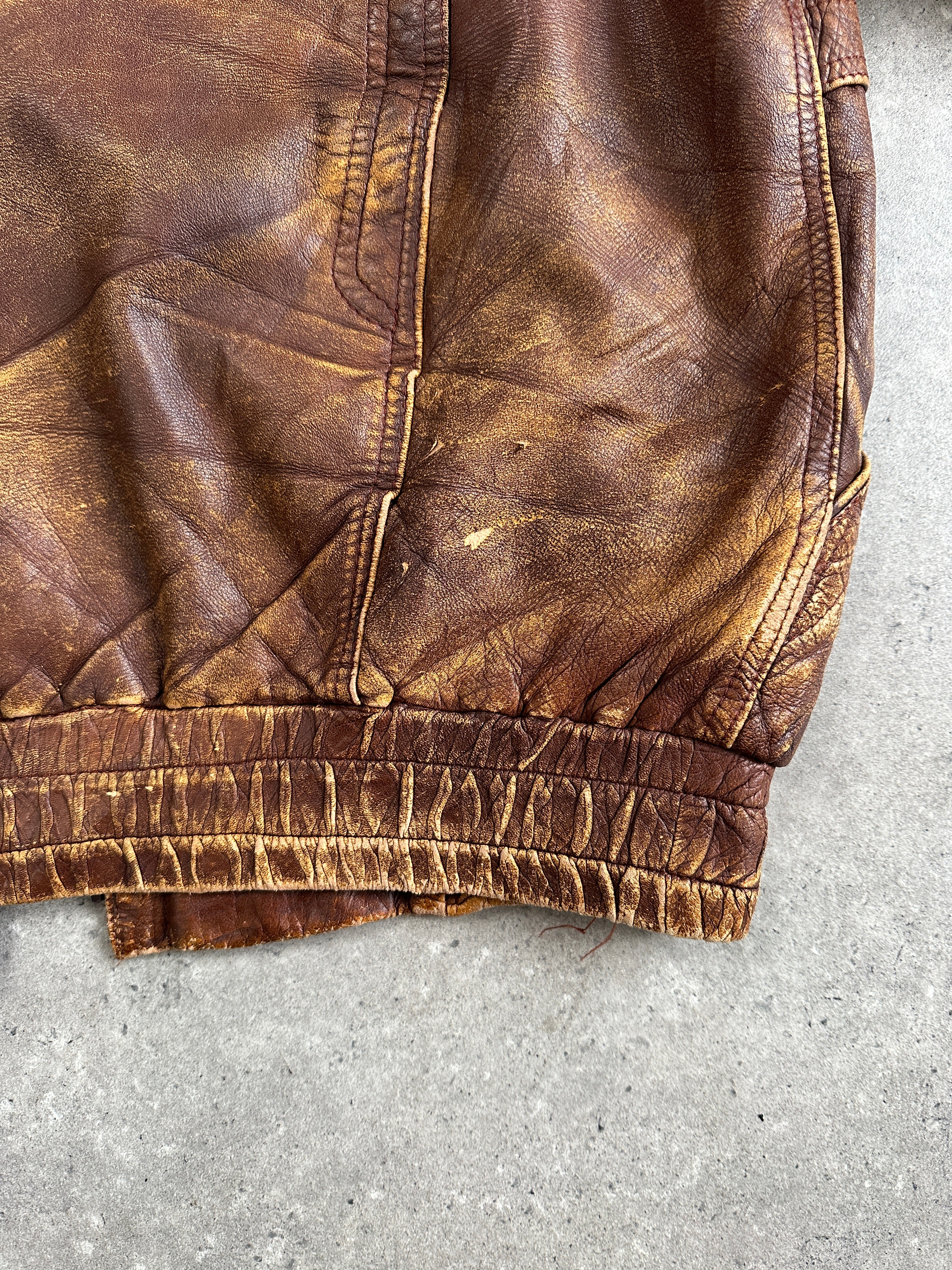 Vintage 1990s Aged Leather Bomber Jacket - XL