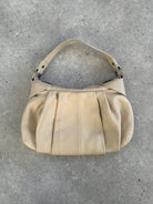 A vintage early 2000s Emporio Armani leather shoulder bag in a soft beige tone with a gently structured, relaxed silhouette. Designed with subtle pleating and a refined minimalist shape that aligns with Armani’s quiet luxury era.