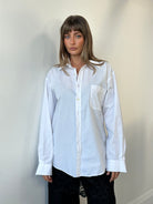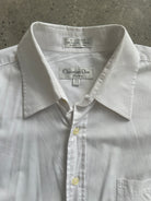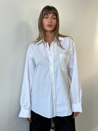 Classic Christian Dior Chemise shirt in crisp white, featuring a pointed collar, single chest pocket, and pearlescent buttons. A versatile wardrobe staple embodying the refined simplicity of Dior’s 1990s shirting.