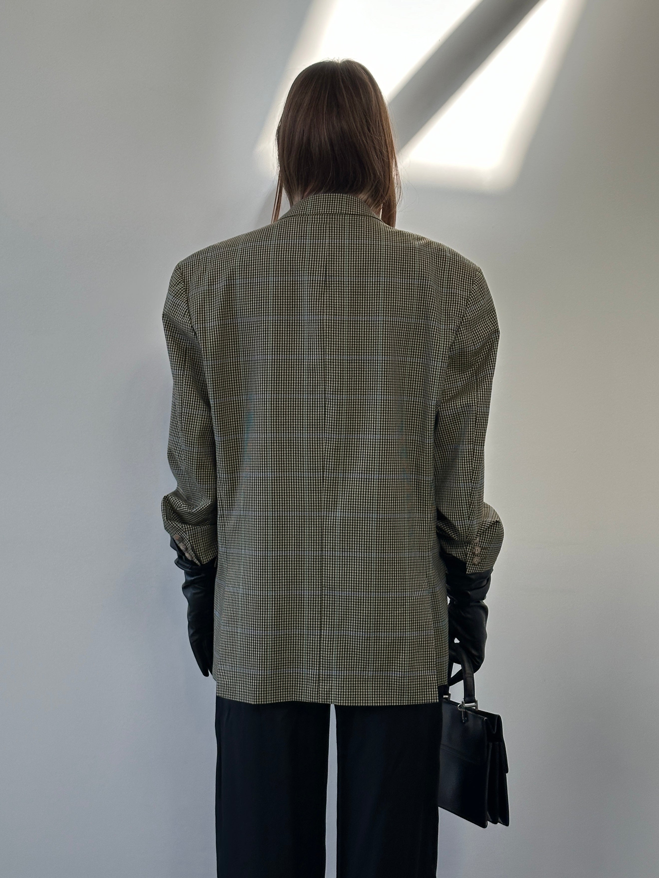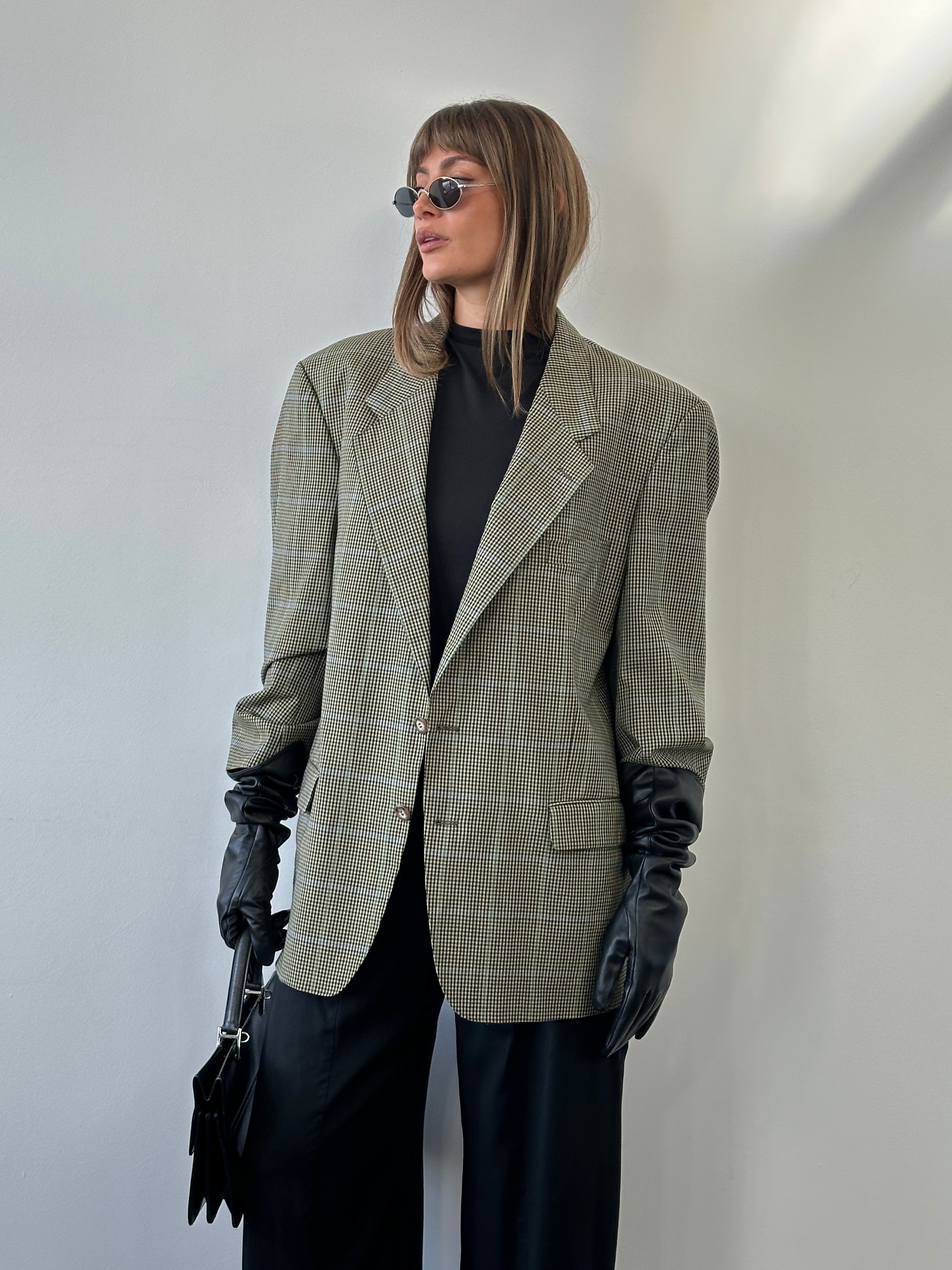 Yves Saint Laurent 1990s Wool Single Breasted Check Blazer - 44R/XL