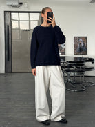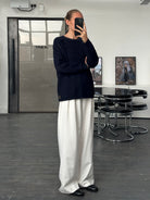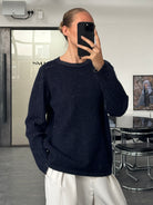 Armani Jeans 2000s crew neck jumper crafted in a soft navy marl wool & cotton blend. Designed with ribbed sleeves and a smooth body knit for subtle contrast.