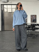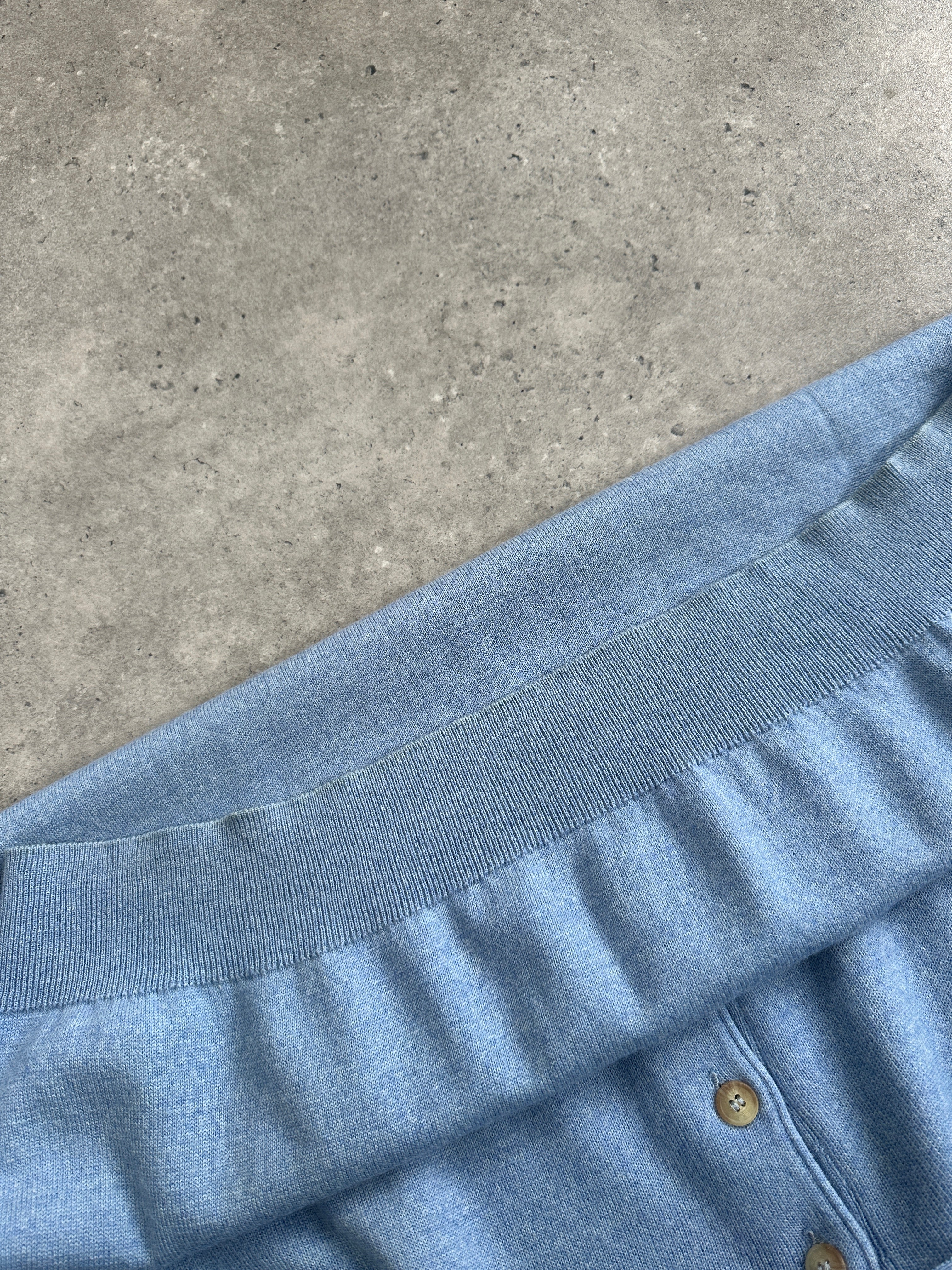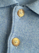 Burberry London 2000s light blue knit polo with merino wool blend, engraved buttons and tonal EKD embroidery logo.