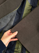 Vintage Emporio Armani 1990s tailored coat crafted from soft virgin wool in with clean, structured single button closure and striped lining.