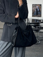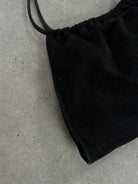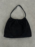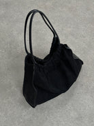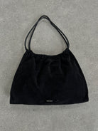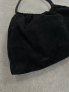 ~ Medium sized hobo tote in soft black suede with leather side panels
