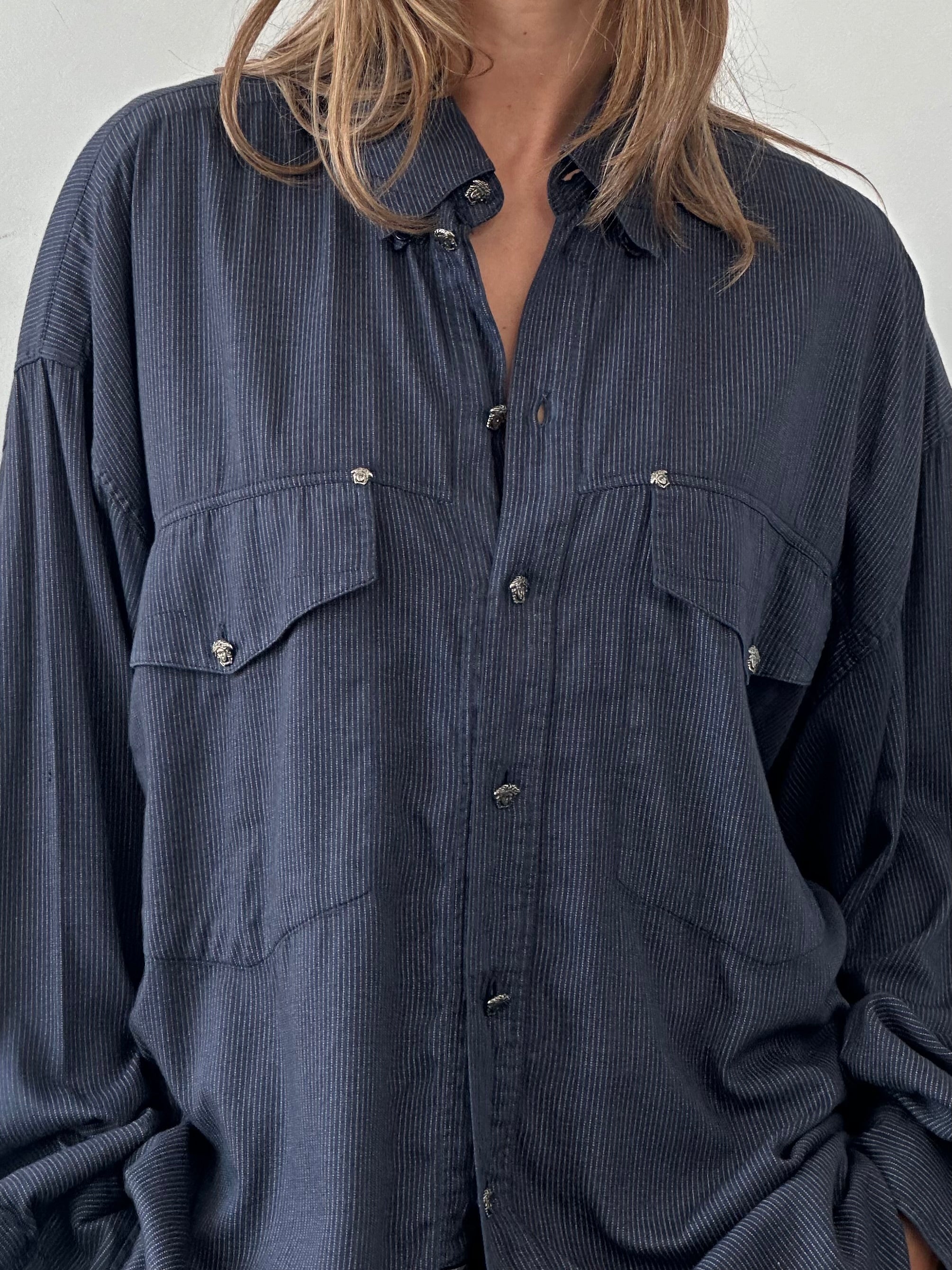 Versace Cotton Medusa Head Pinstripe Shirt - XXL