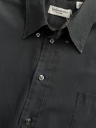 ~ Classic button-down style with pointed collar