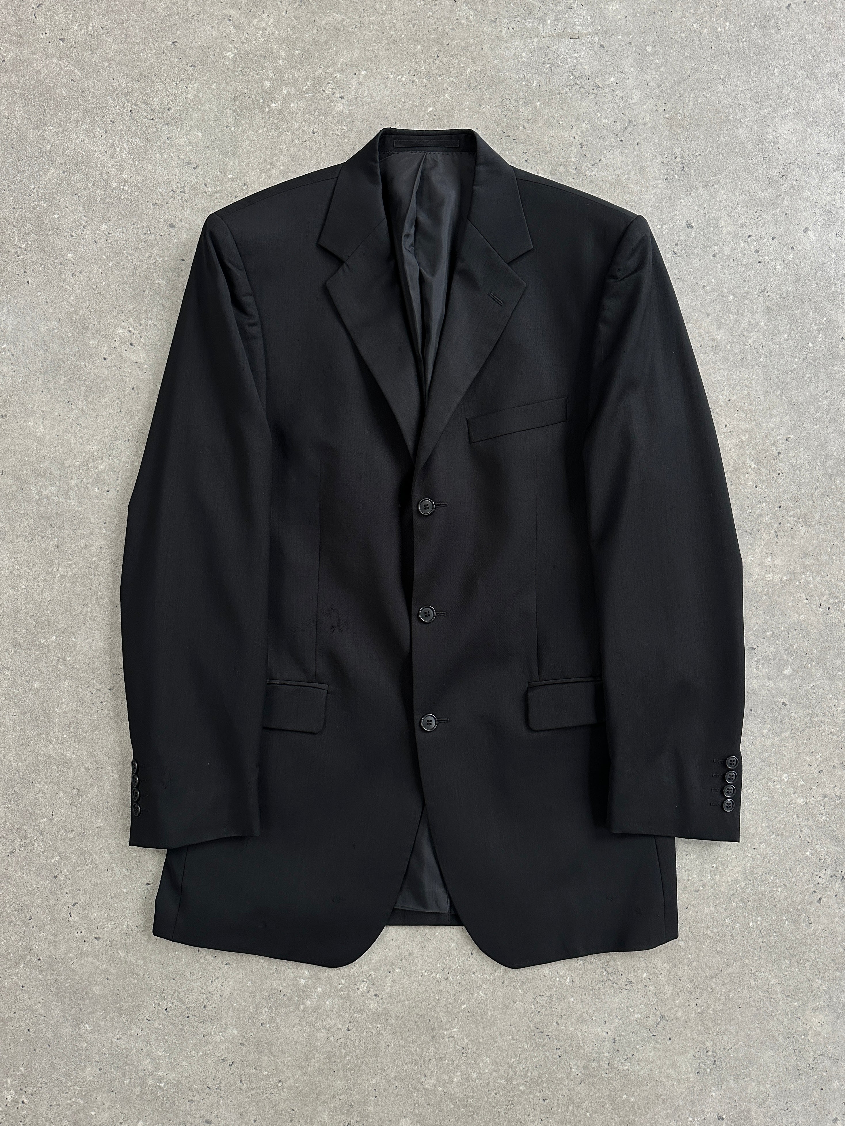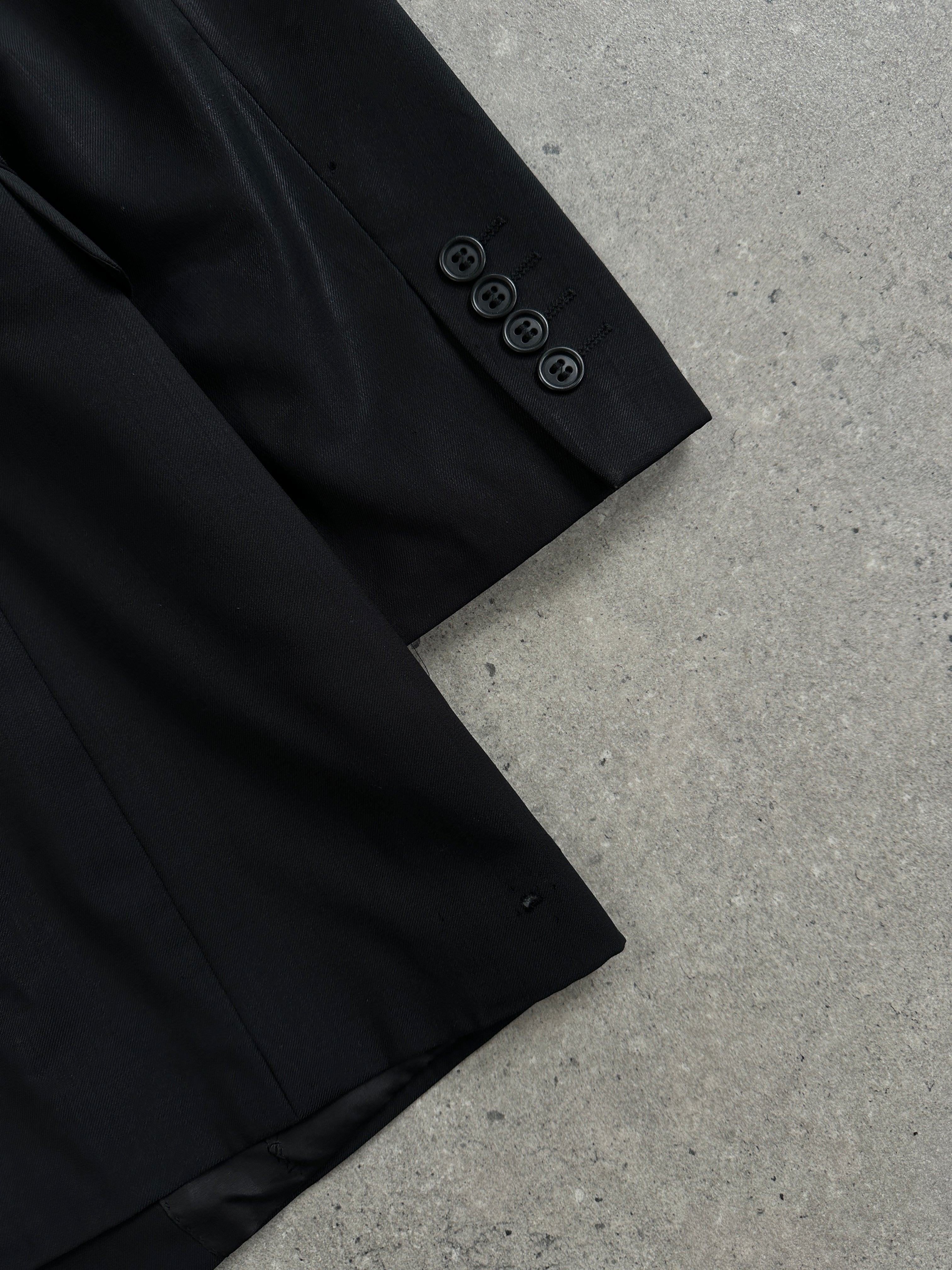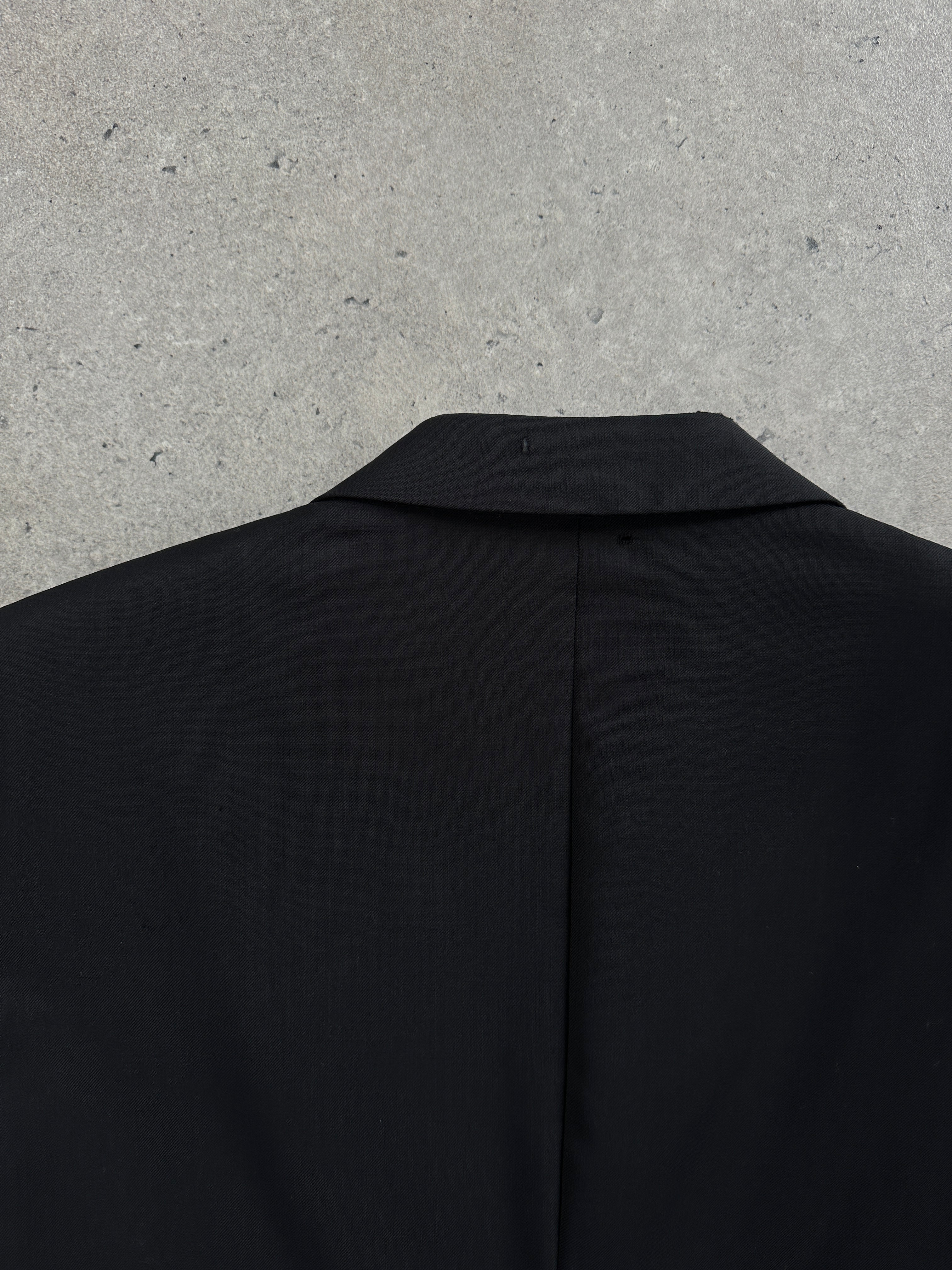 Vintage Yves Saint Laurent Pour Homme single-breasted blazer in a black, tailored from pure new wool with a structured silhouette and lightweight drape. A refined ready-to-wear piece from YSL’s 1990s menswear line.