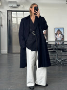 ~ Long tailored silhouette in deep navy