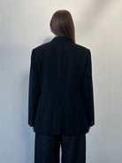 A navy tailored blazer from the early 2000s Emporio Armani Johnny Line, featuring a clean structured silhouette with patch pockets and subtle tonal detailing. A minimal refined piece with a quiet luxury feel.