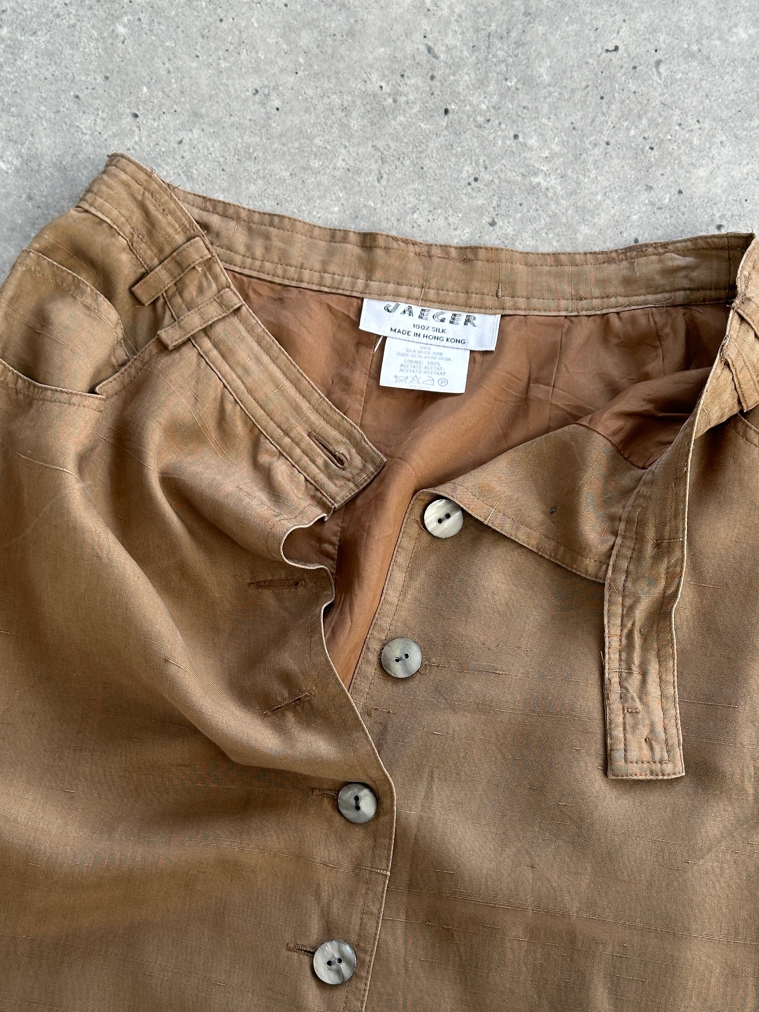 Jaeger Pure Silk Button Down Midi Skirt - W24