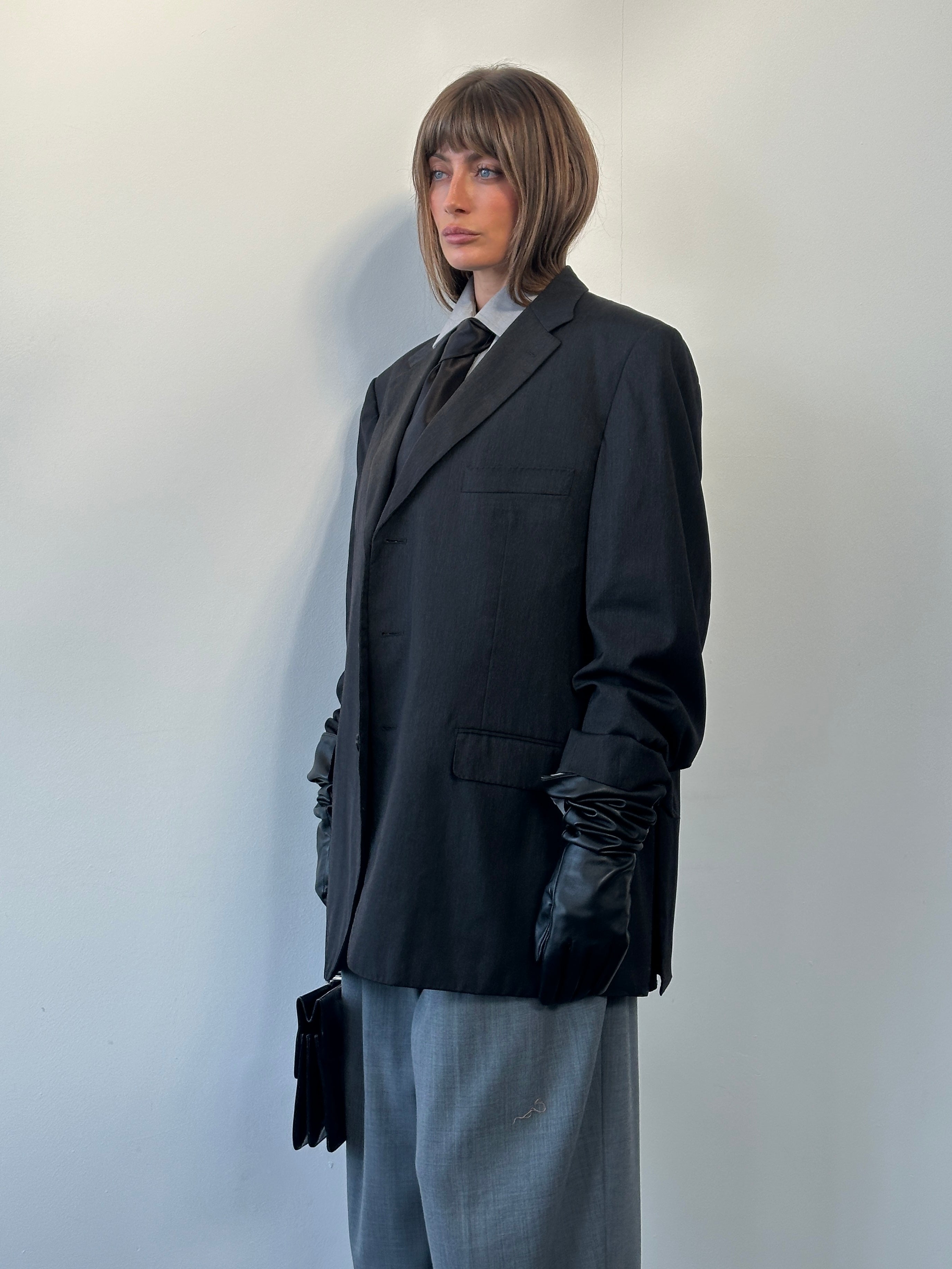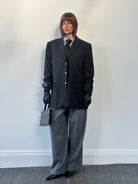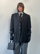 Vintage Yves Saint Laurent 1990s tailored grey blazer crafted from Loro Piana’s Winter Tasmanian Super 120’s wool, finished with subtle iridescent buttons. A refined menswear piece that wears beautifully as a relaxed oversized womens fit.