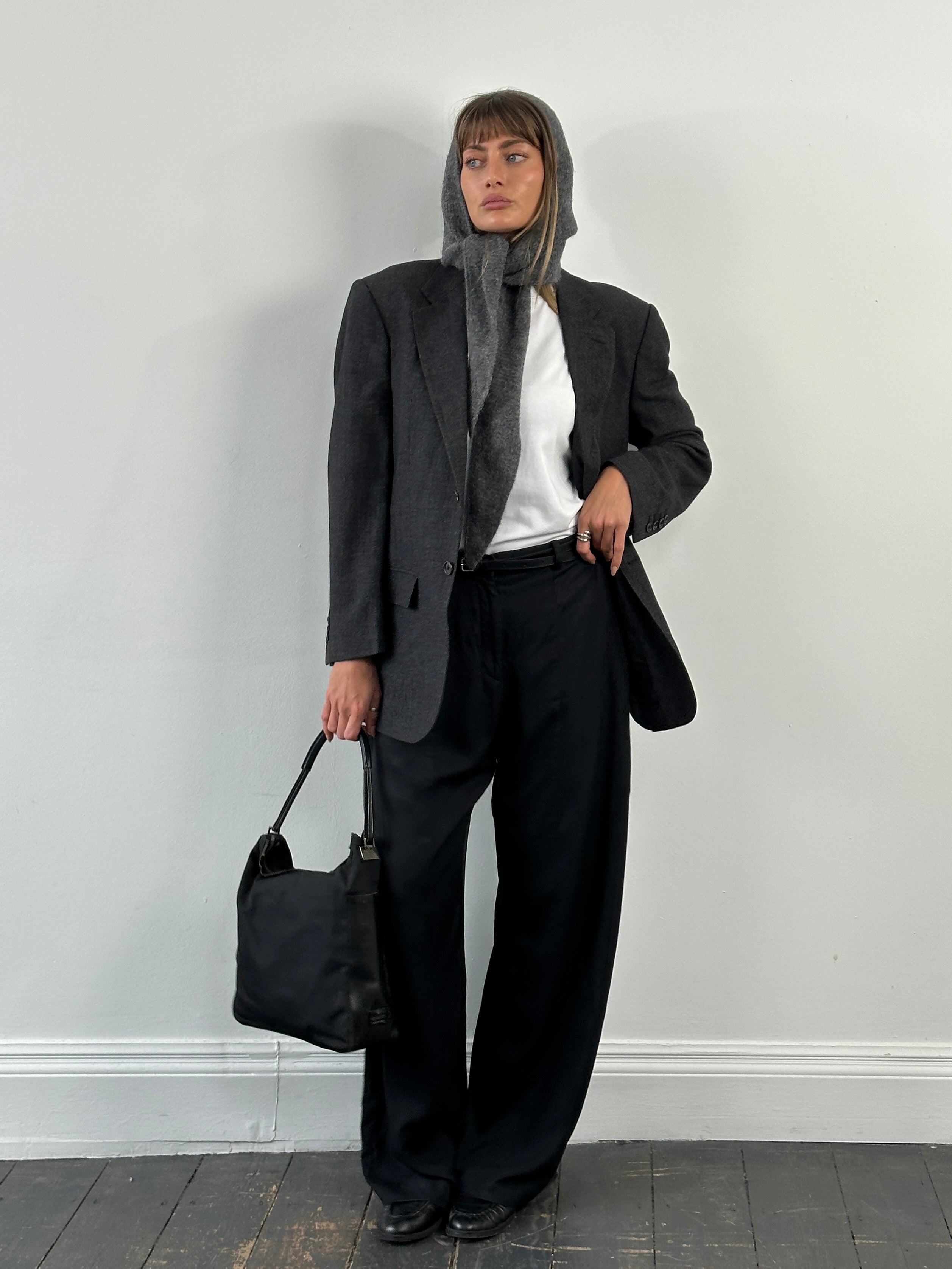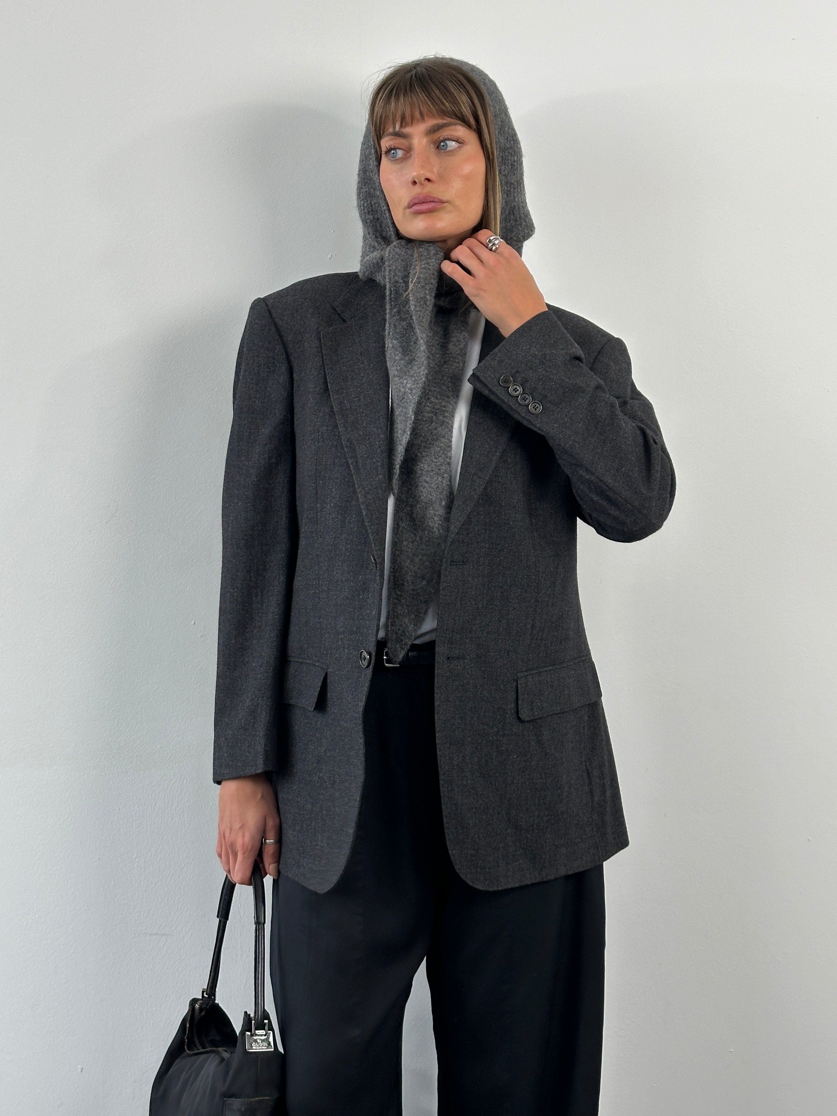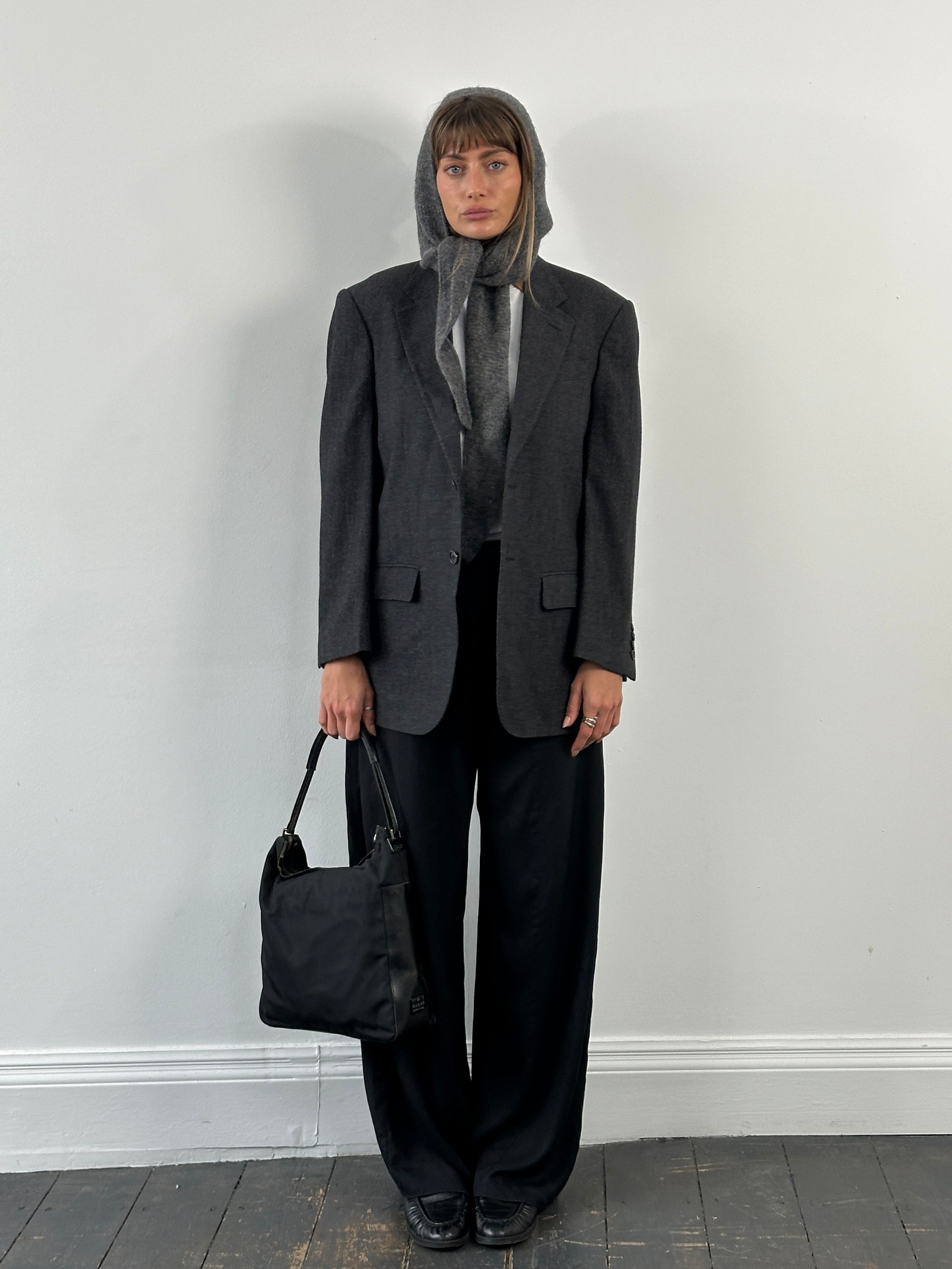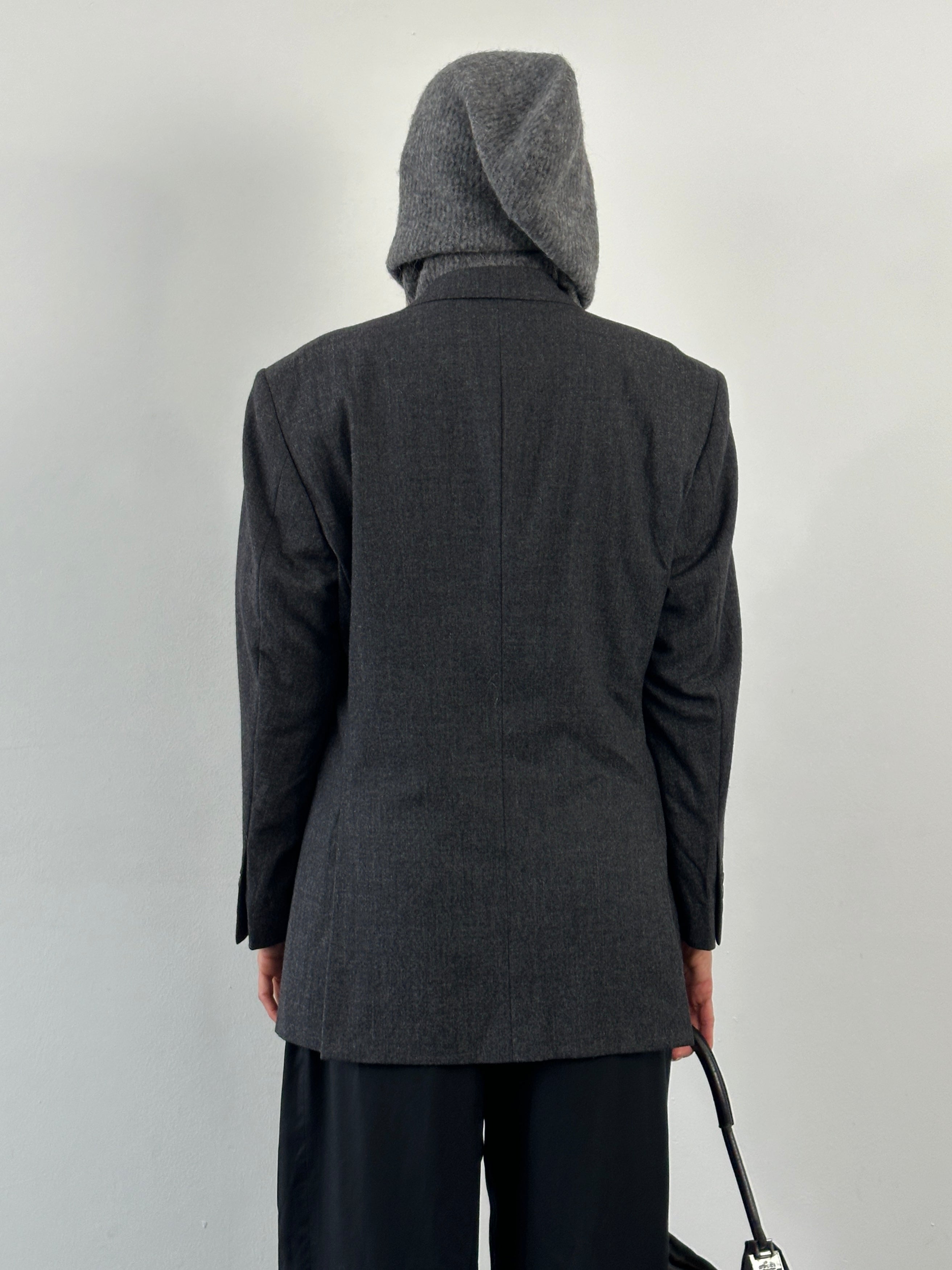 A vintage 1990s Ascari Parma single breasted blazer in a soft grey tone crafted from Loro Piana Super 110’s wool. A clean Italian tailored silhouette with a refined drape and subtle monogram lining detail.
