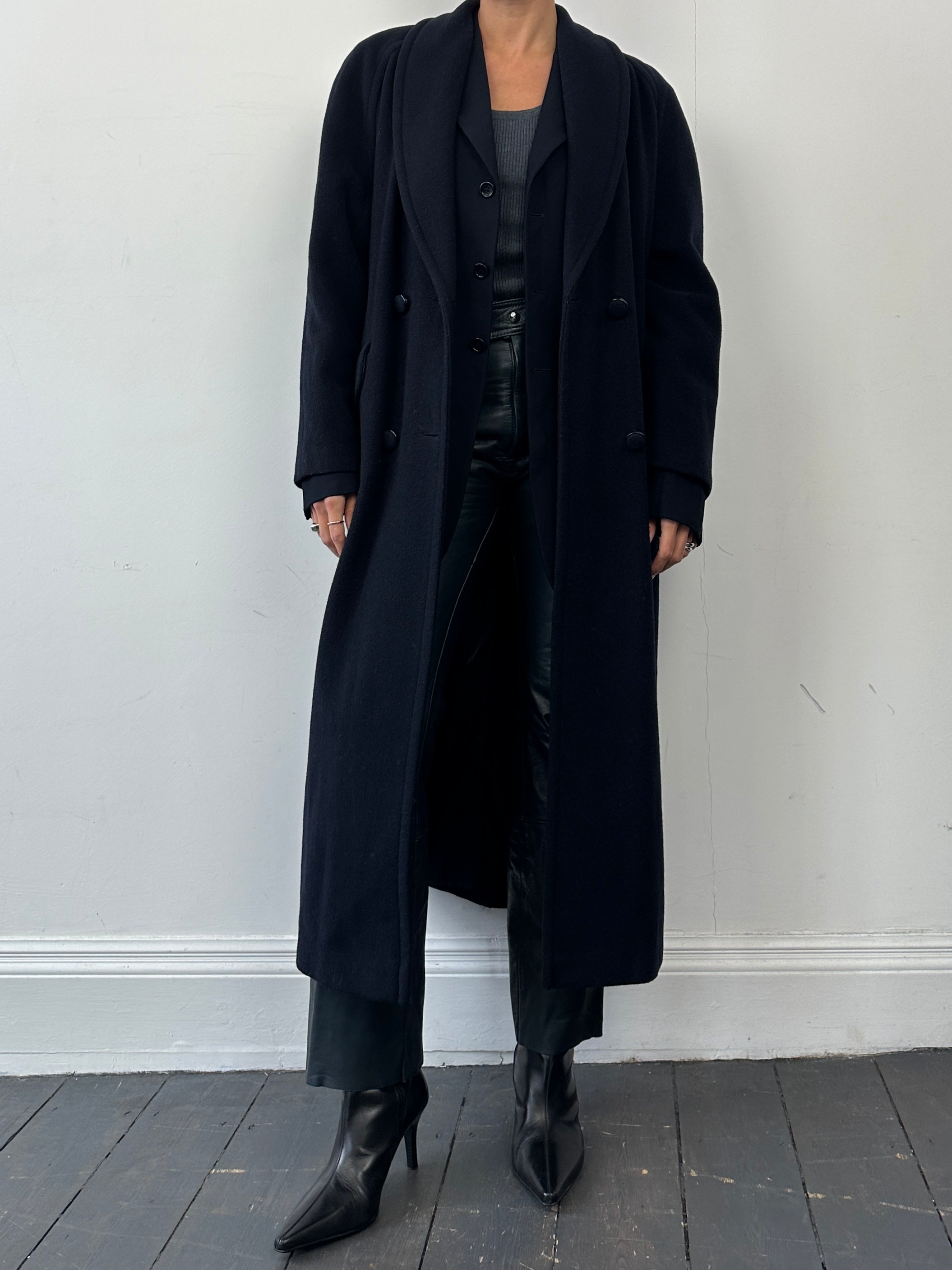British Vintage Wool Cashmere Double Breasted Coat - M