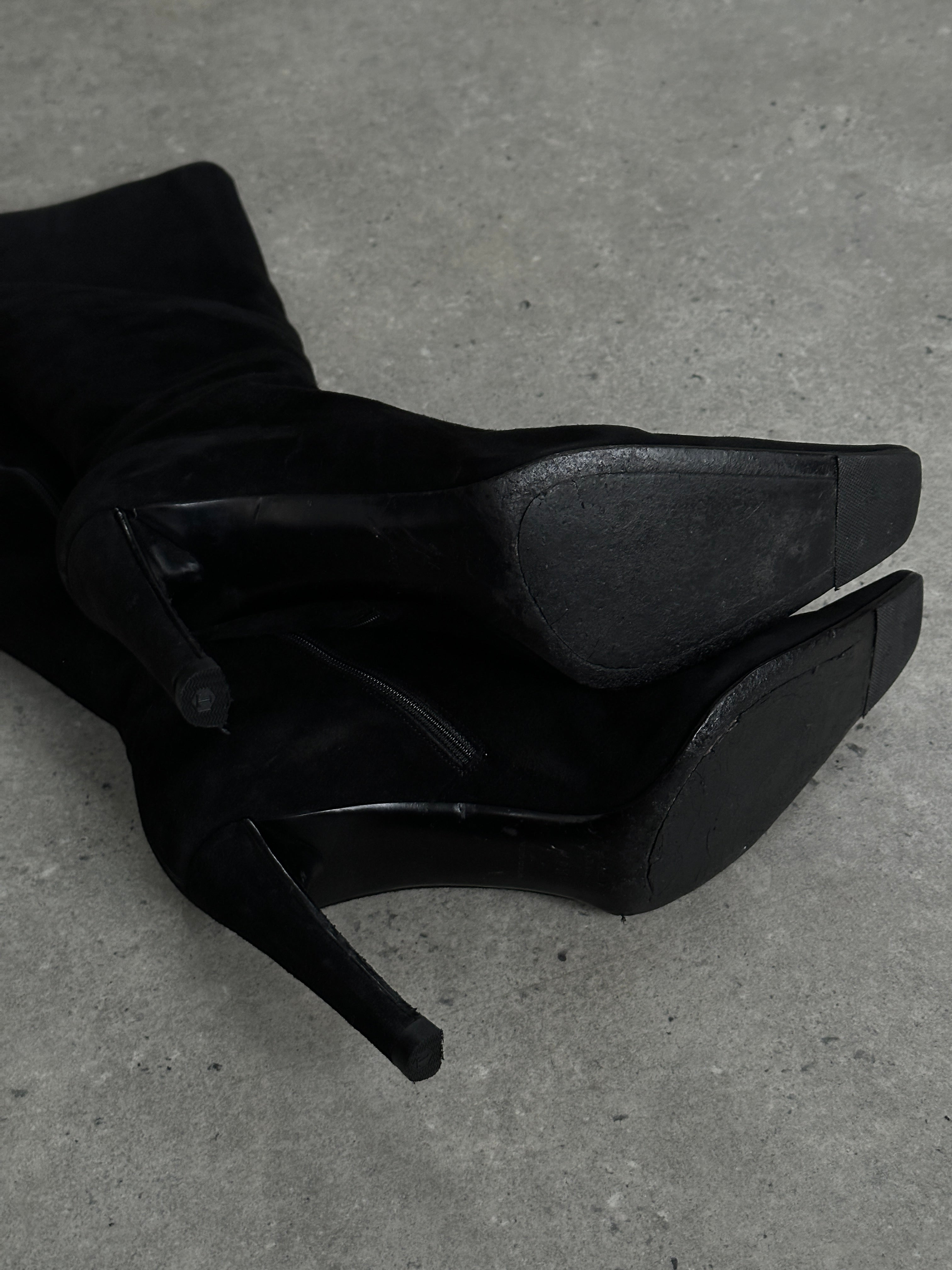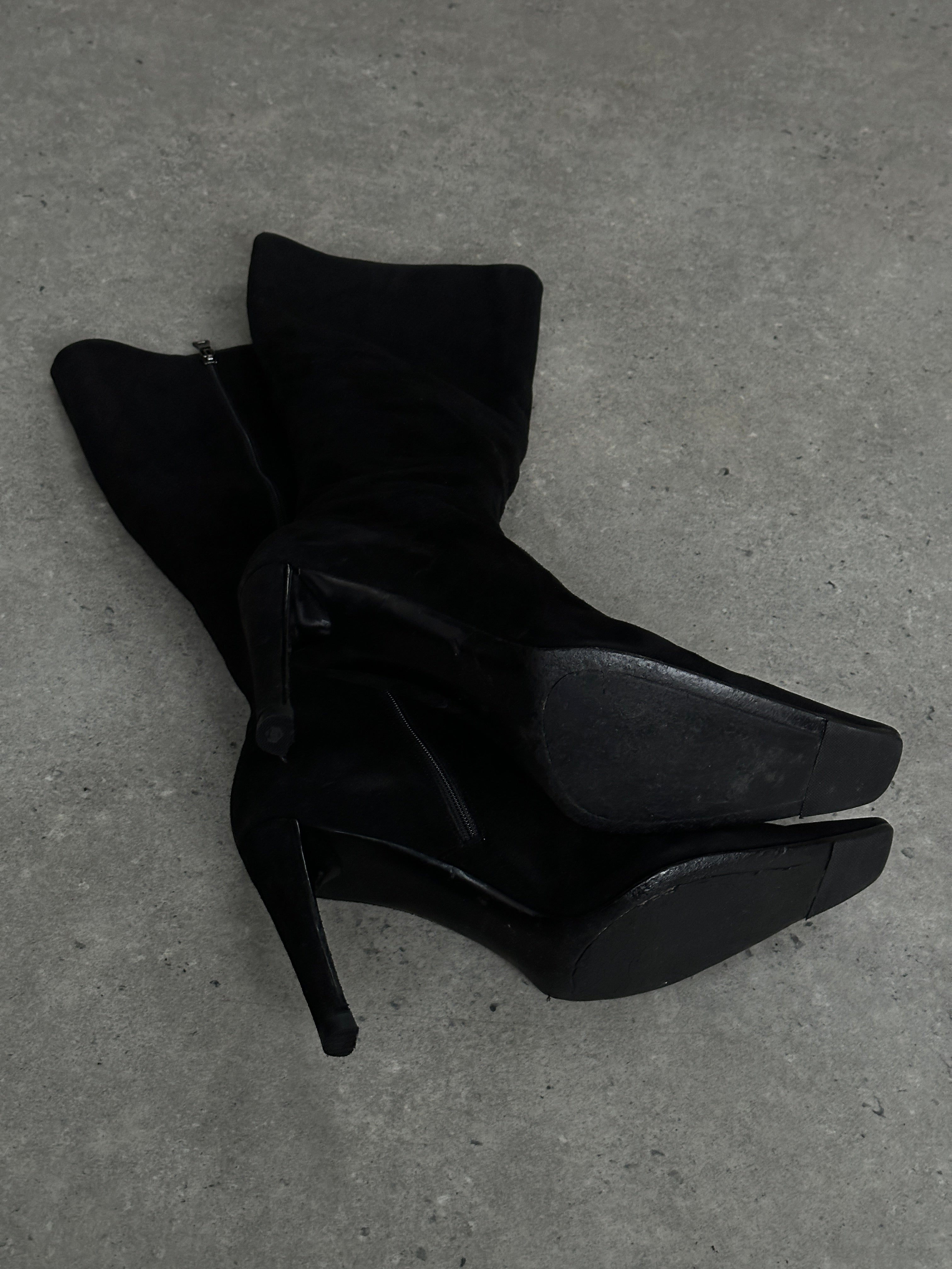 Prada 2000s Suede Square Toe Heeled Knee Boots - UK 7.5 / EU 40.5