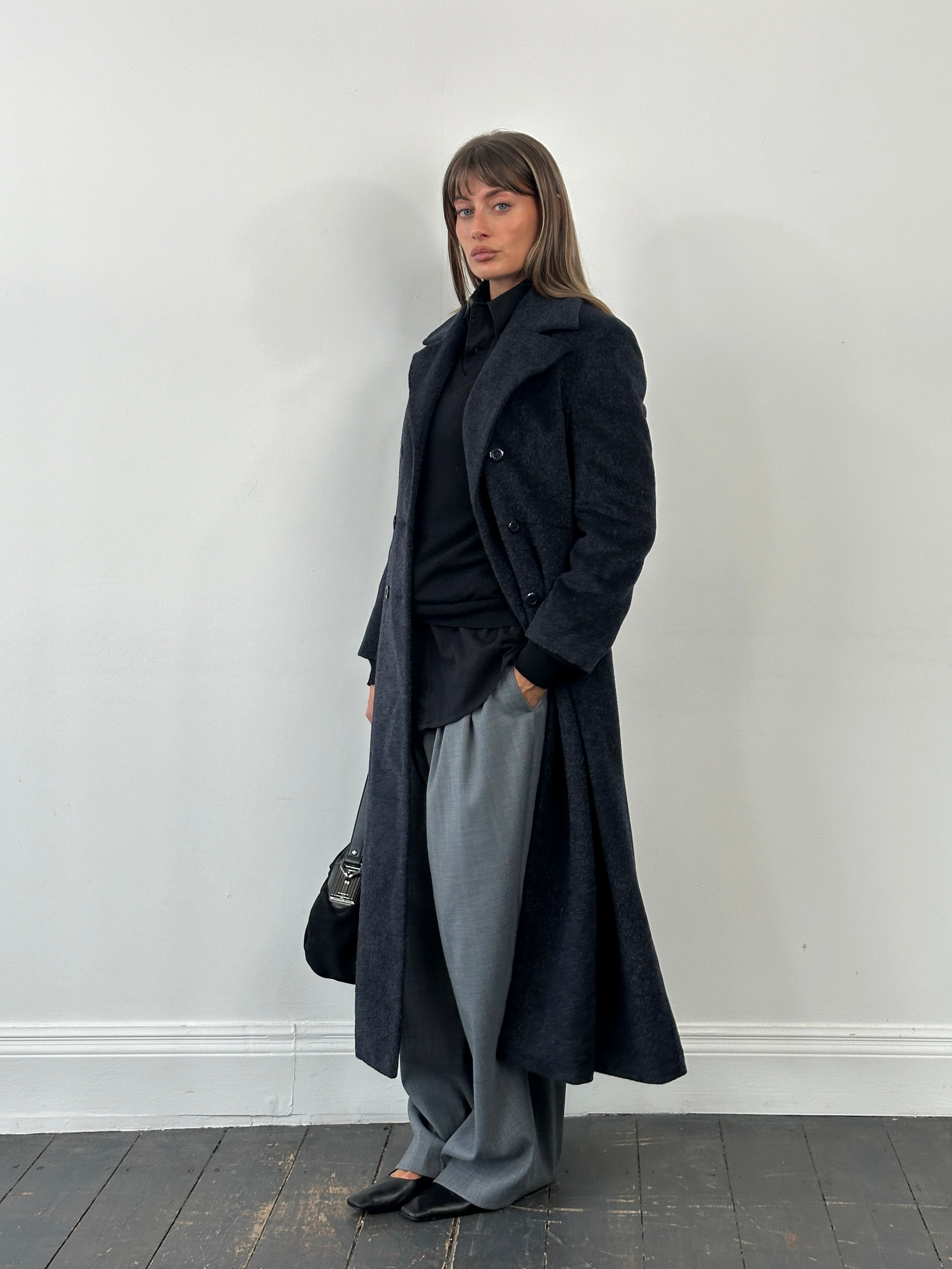 Vintage 1990s Wool Mohair Double Breasted Coat - S/M