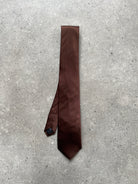 Vintage 2000s Joseph & Feiss tie in brown silk with a smooth satin finish and classic tailored silhouette. The minimal design and rich tone make this piece a versatile accessory suited to both formal tailoring and modern styling.