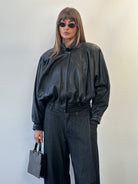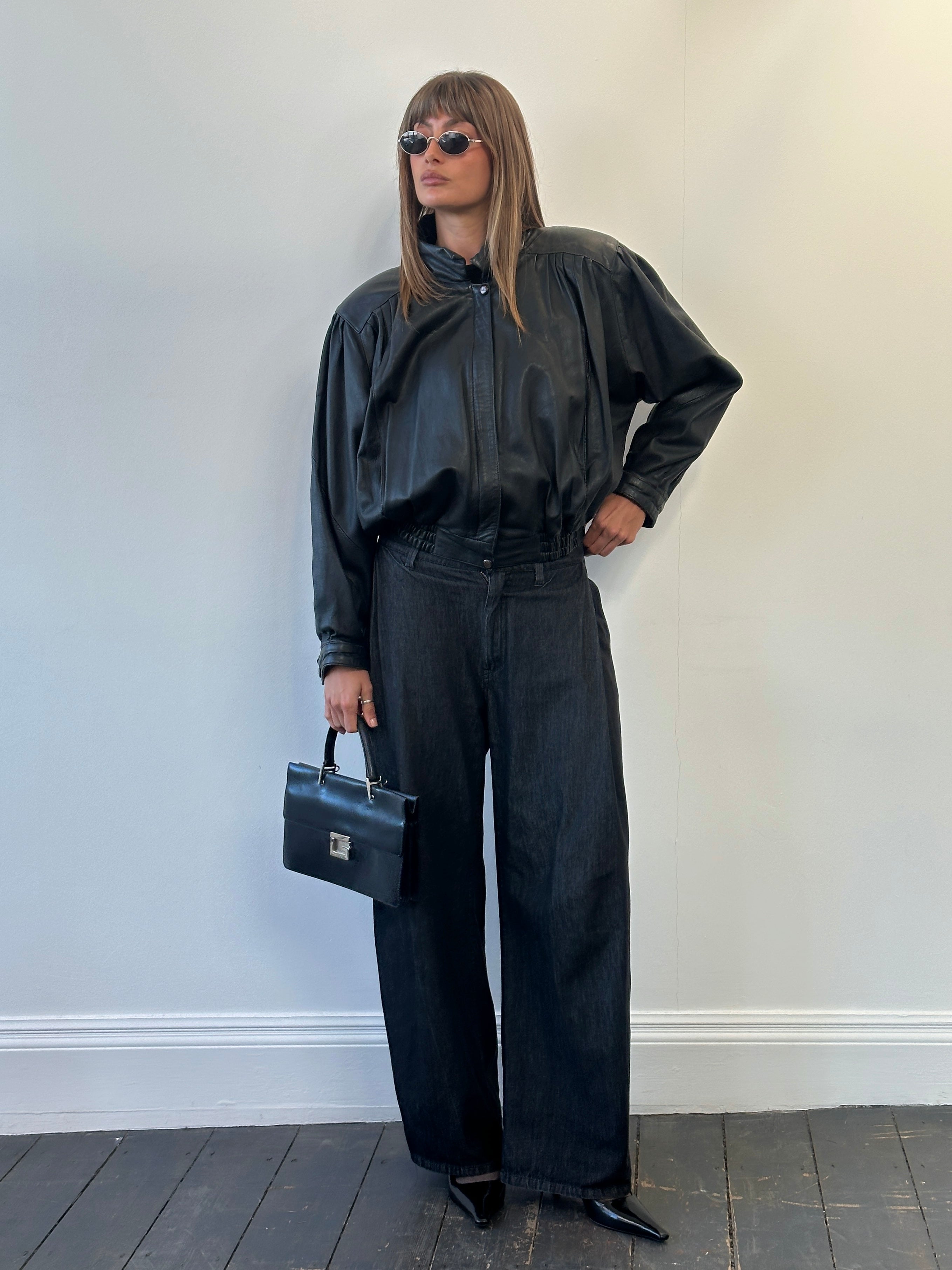 ~ Soft black leather with relaxed bomber shape