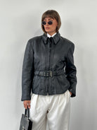 Vintage 1990s High Neck Belted Leather Jacket - M