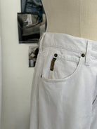 Vintage 1990s Armani Jeans white denim trousers, cut in a classic straight leg with heritage riveted branding and eagle emblem.