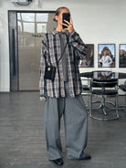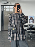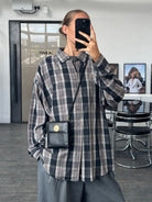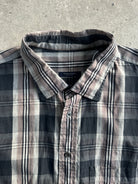 Vintage Burberry London 1990s check pure cotton shirt, made in the U.S.A., featuring neutral brown and charcoal tones with single chest pocket.
