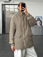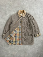 Burberrys 1990s Quilted Nova Check Cord Collar Jacket – L