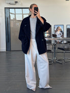 Max Mara vintage 1990s sculptural wrap-front in deep navy. Crafted in Italy from a warm wool & mohair blend. Featuring asymmetric fastening and Max Mara monogram lining.