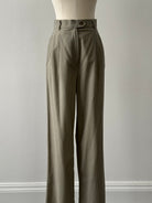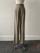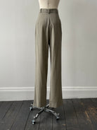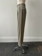 Max Mara vintage soft green pure virgin wool trousers with a faint tonal stripe and fluid straight leg silhouette. Designed with a high rise and soft front pleats, offering a relaxed tailored drape typical of the 1990s.