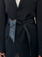 Minimal tie-style belt crafted from soft faux leather with a subtle sheen finish and pointed ends. A versatile piece that can be styled at the waist or hips for a sleek, sculpted look.