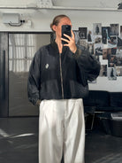 1980s - 1990s Italian bomber in pure silk, finished with ribbed trims and a subtle embroidered crest.