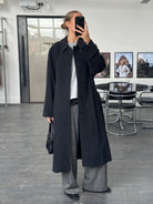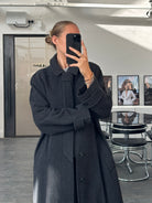 Vintage 1990s wool and cashmere belted coat, designed in Italy by Carlo Bellucci, blending refined tailoring with a soft brushed finish.