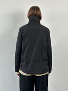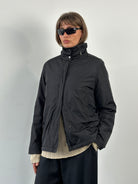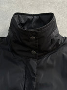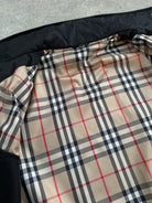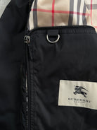 A vintage early 2000s Burberry padded nylon jacket in black featuring double zips. A clean utilitarian silhouette elevated by heritage nova check lining and a structured high neck.