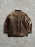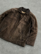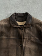 Vintage 1990s leather jacket, crafted in distressed brown leather with button closure, welt pockets and workwear inspired details.