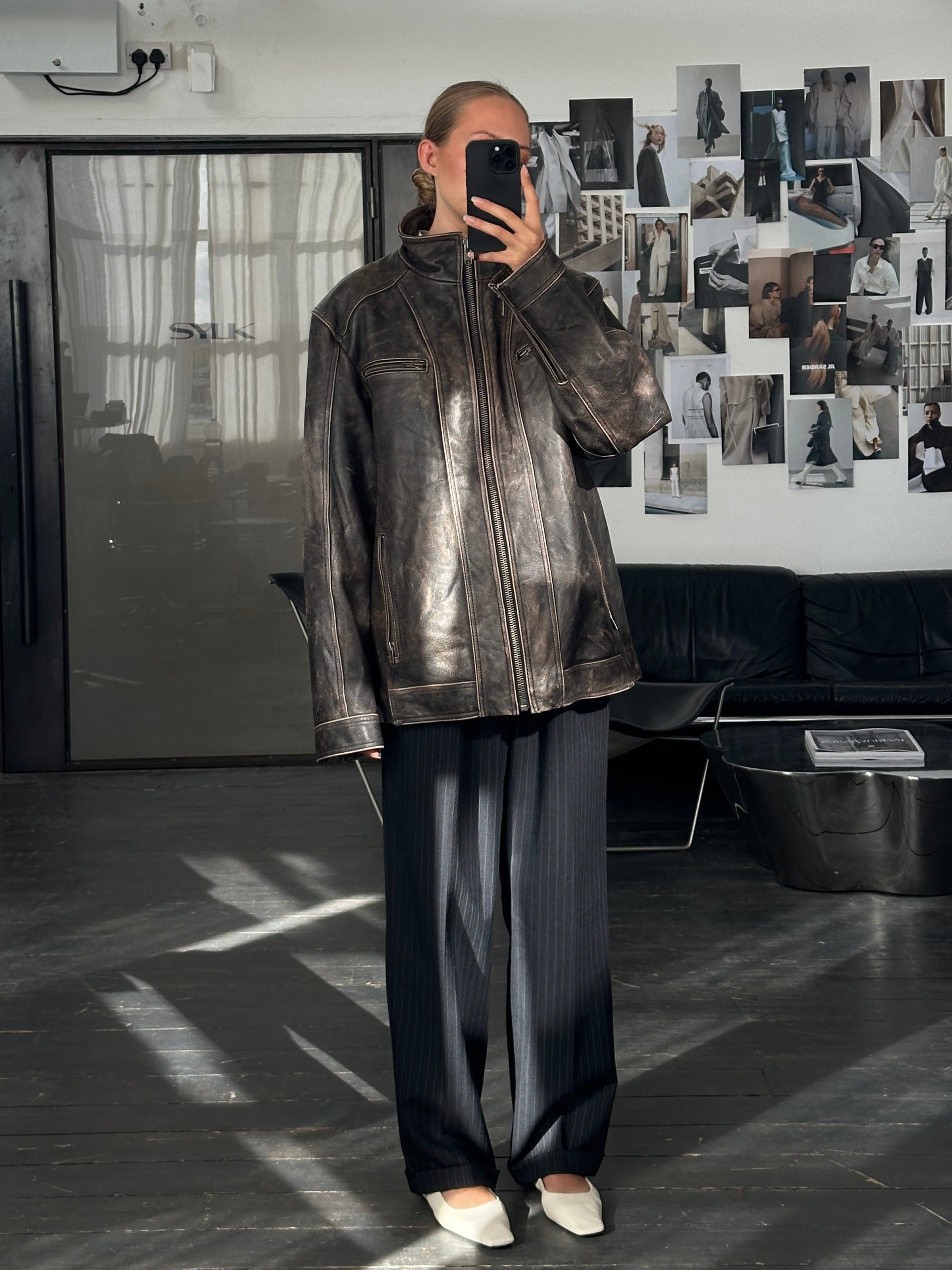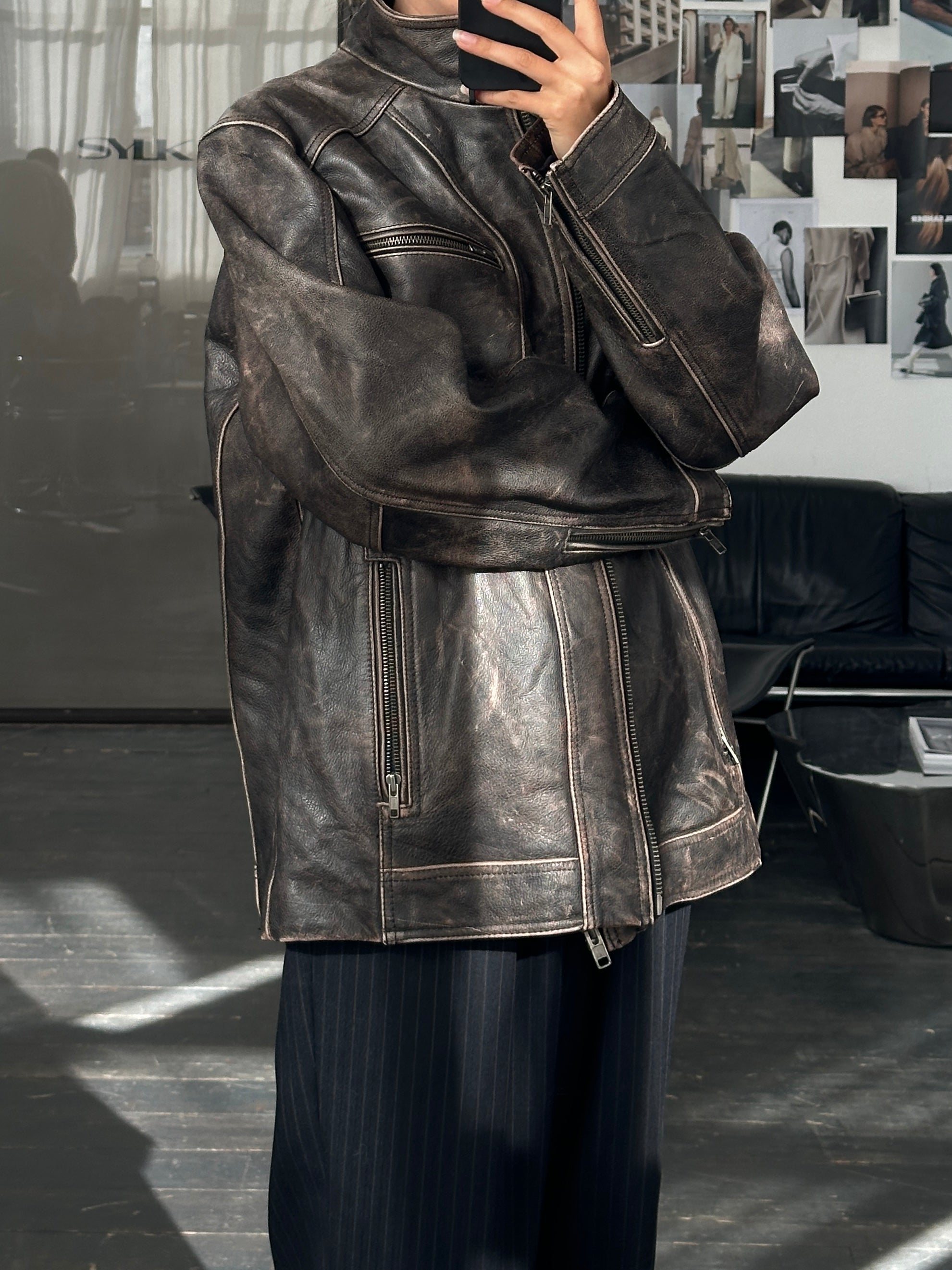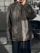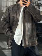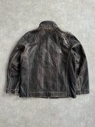 Vintage 2000s Distressed High Neck Leather Jacket - XL