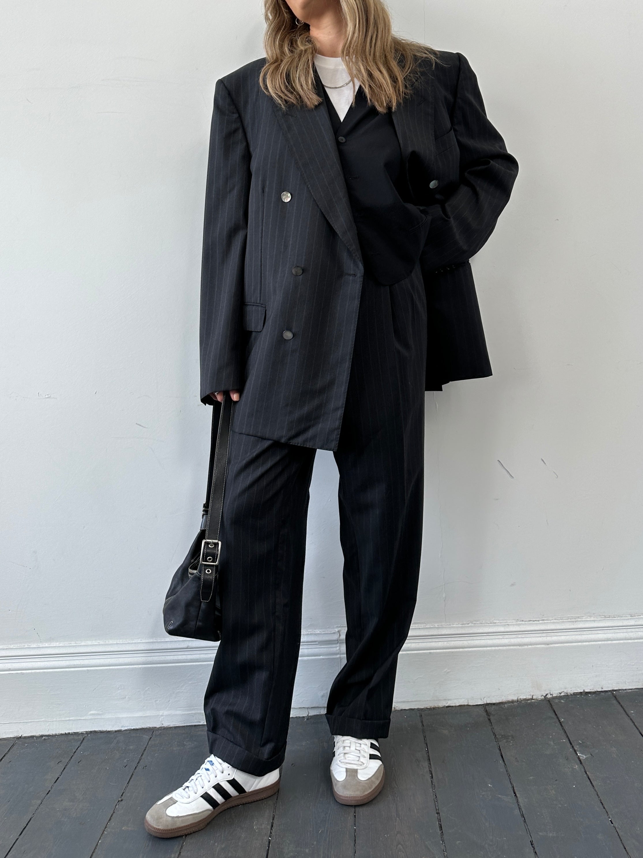 Pierre Cardin Pinstripe Double Breasted Wool Suit - 46/W34