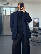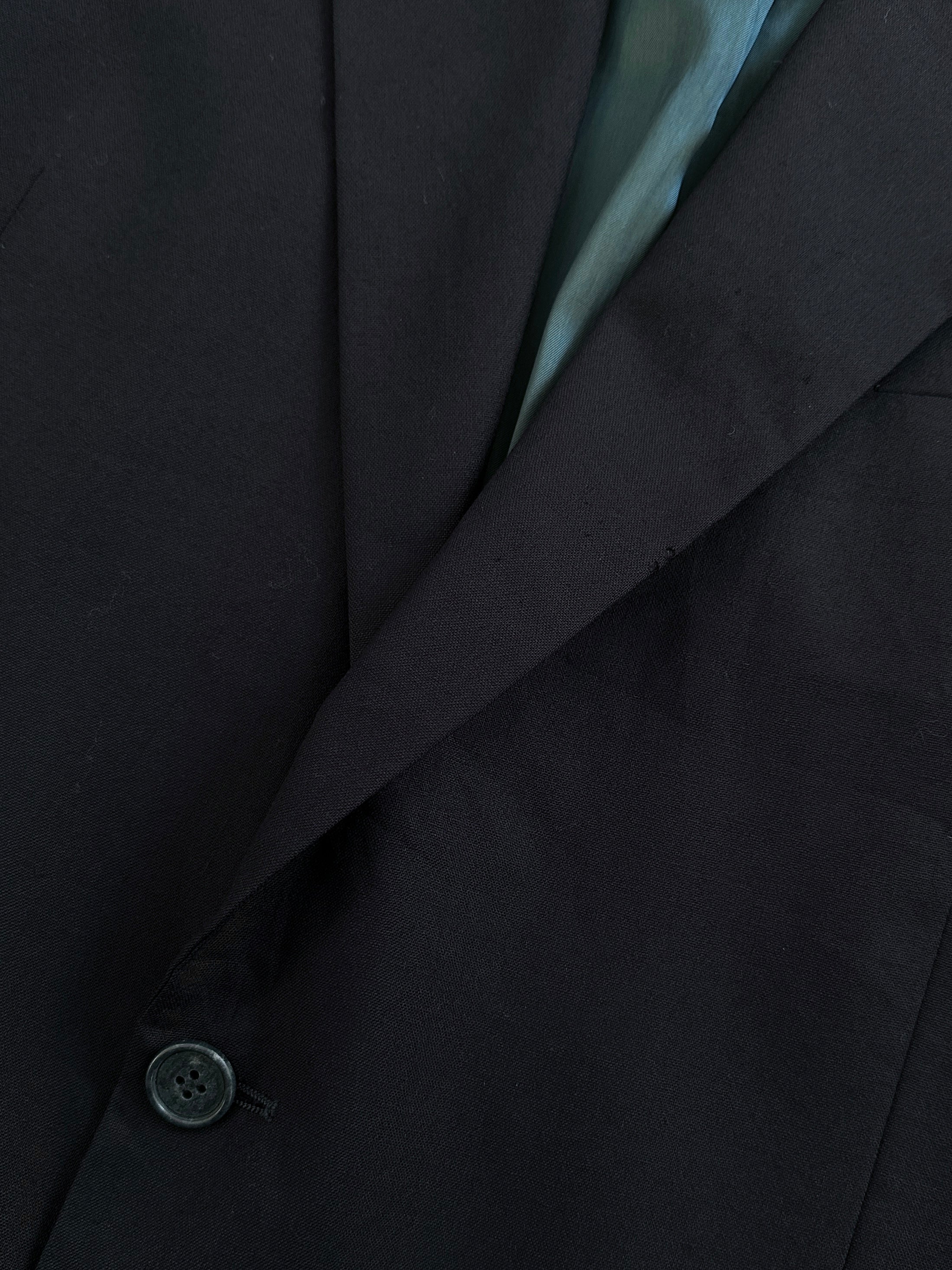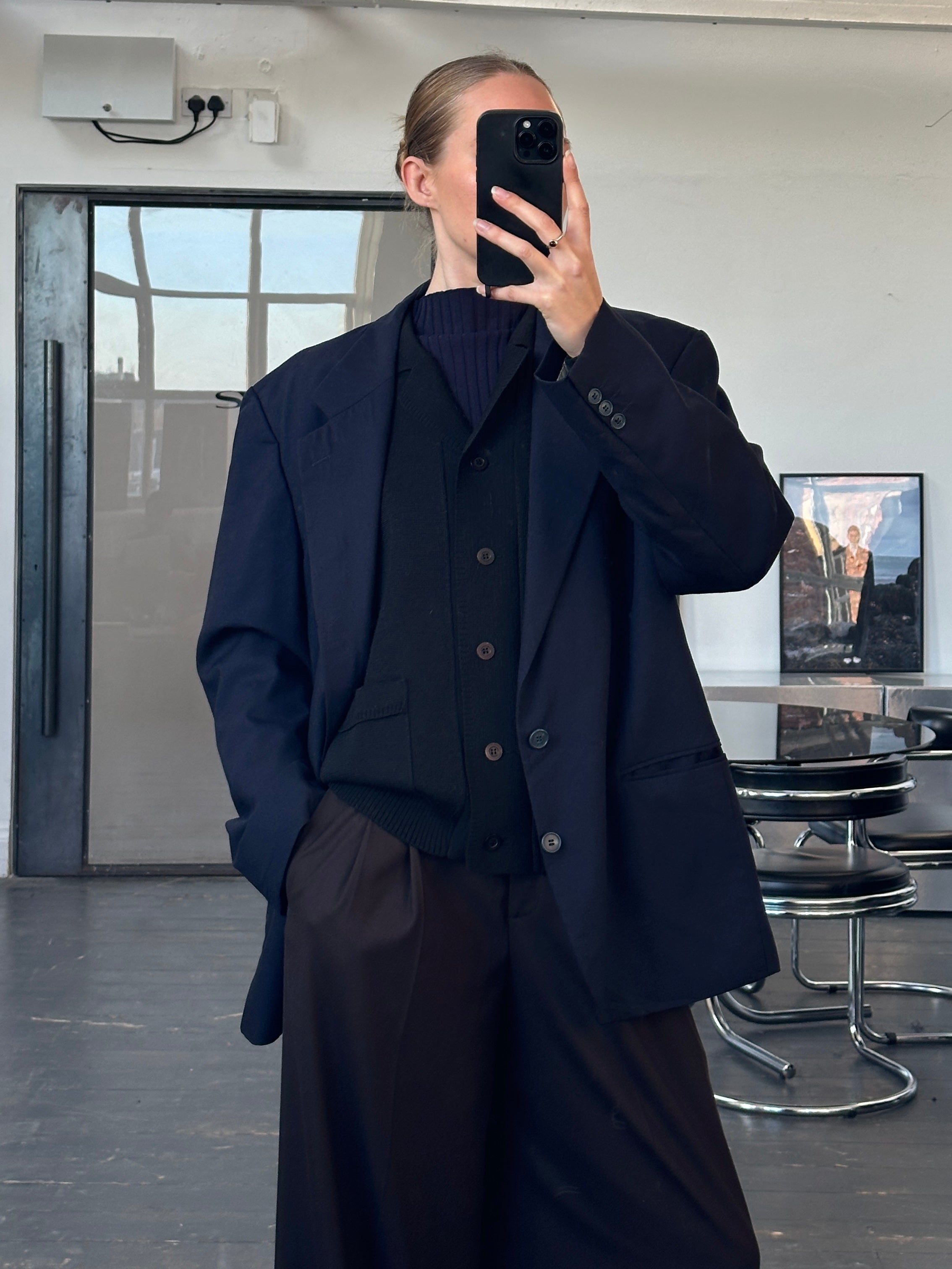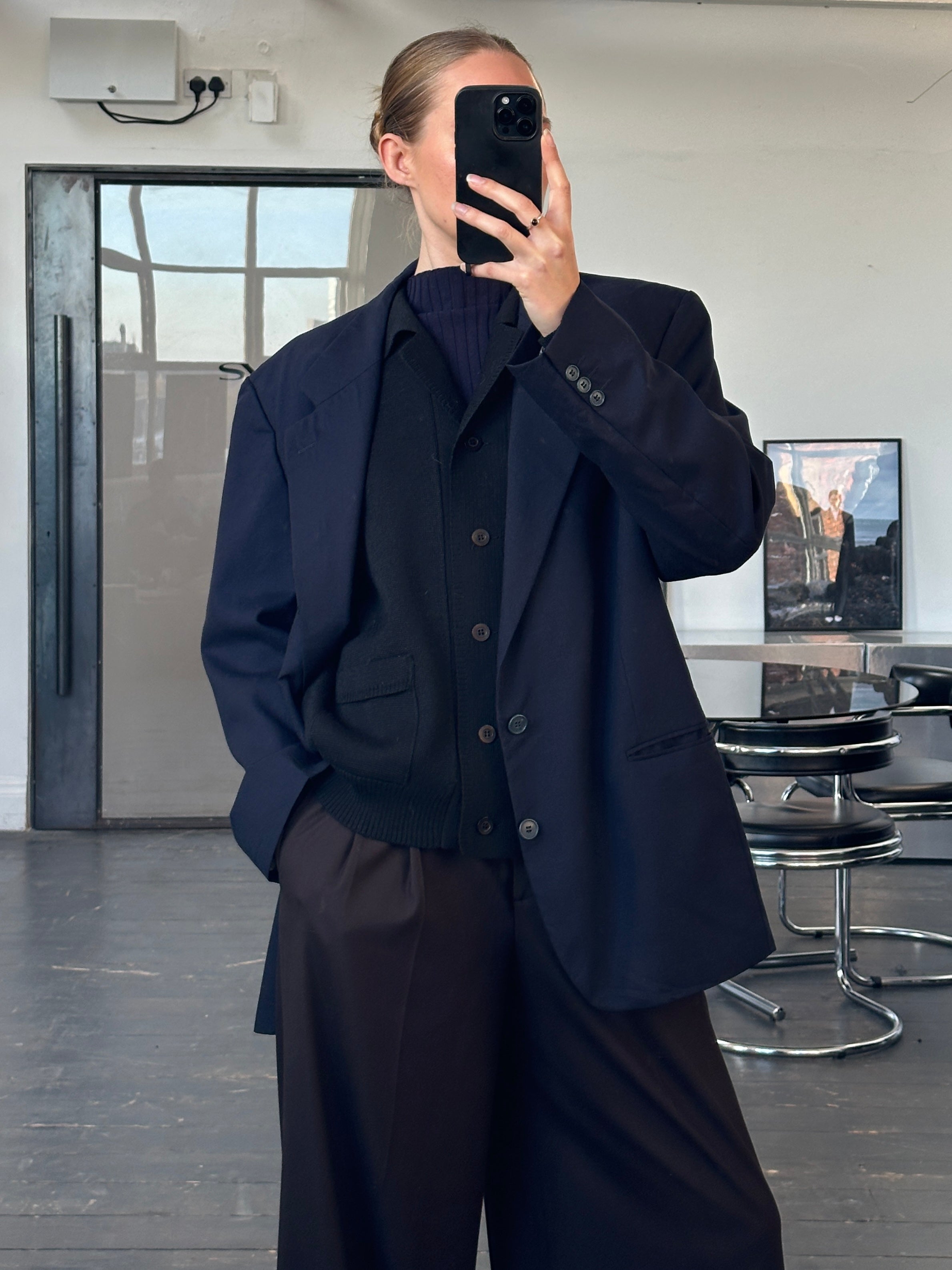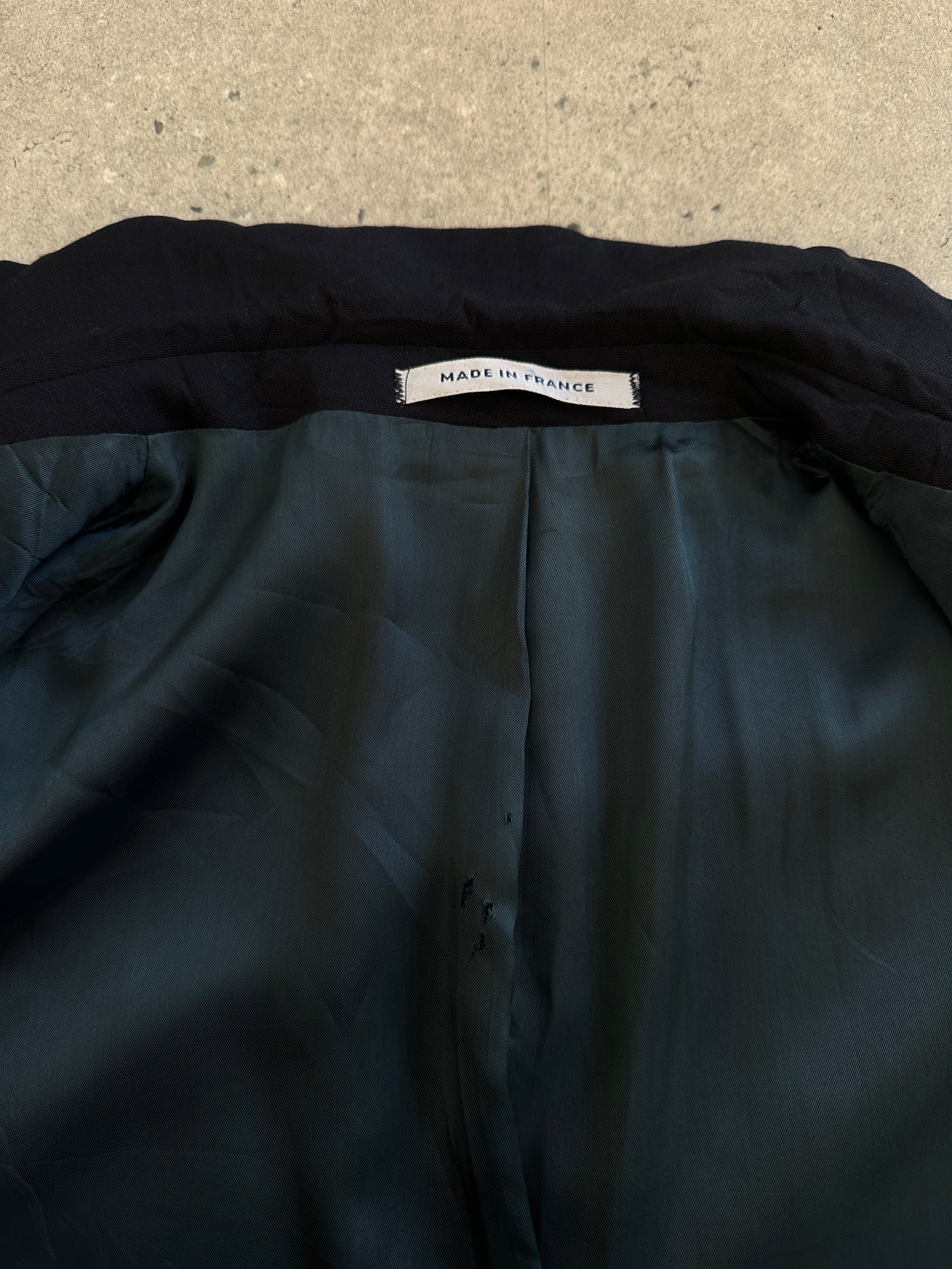 A vintage 1990s Yves Saint Laurent menswear blazer in a deep navy tone. Made in France. Clean single breasted tailoring with a softly structured silhouette that reflects YSL’s refined Parisian approach to suiting.