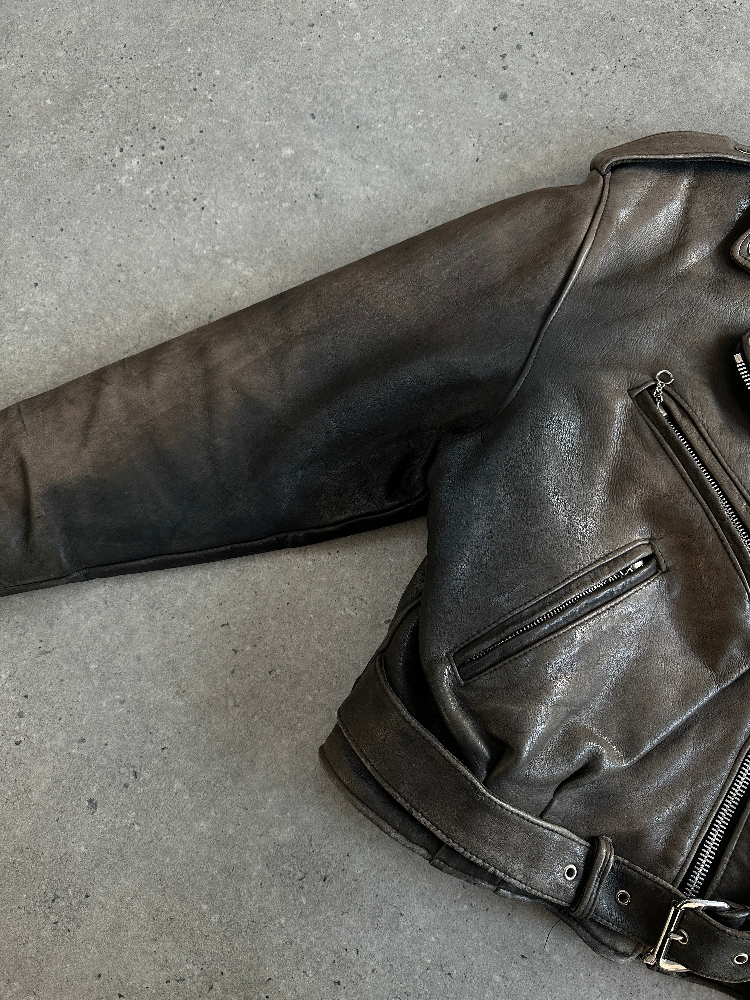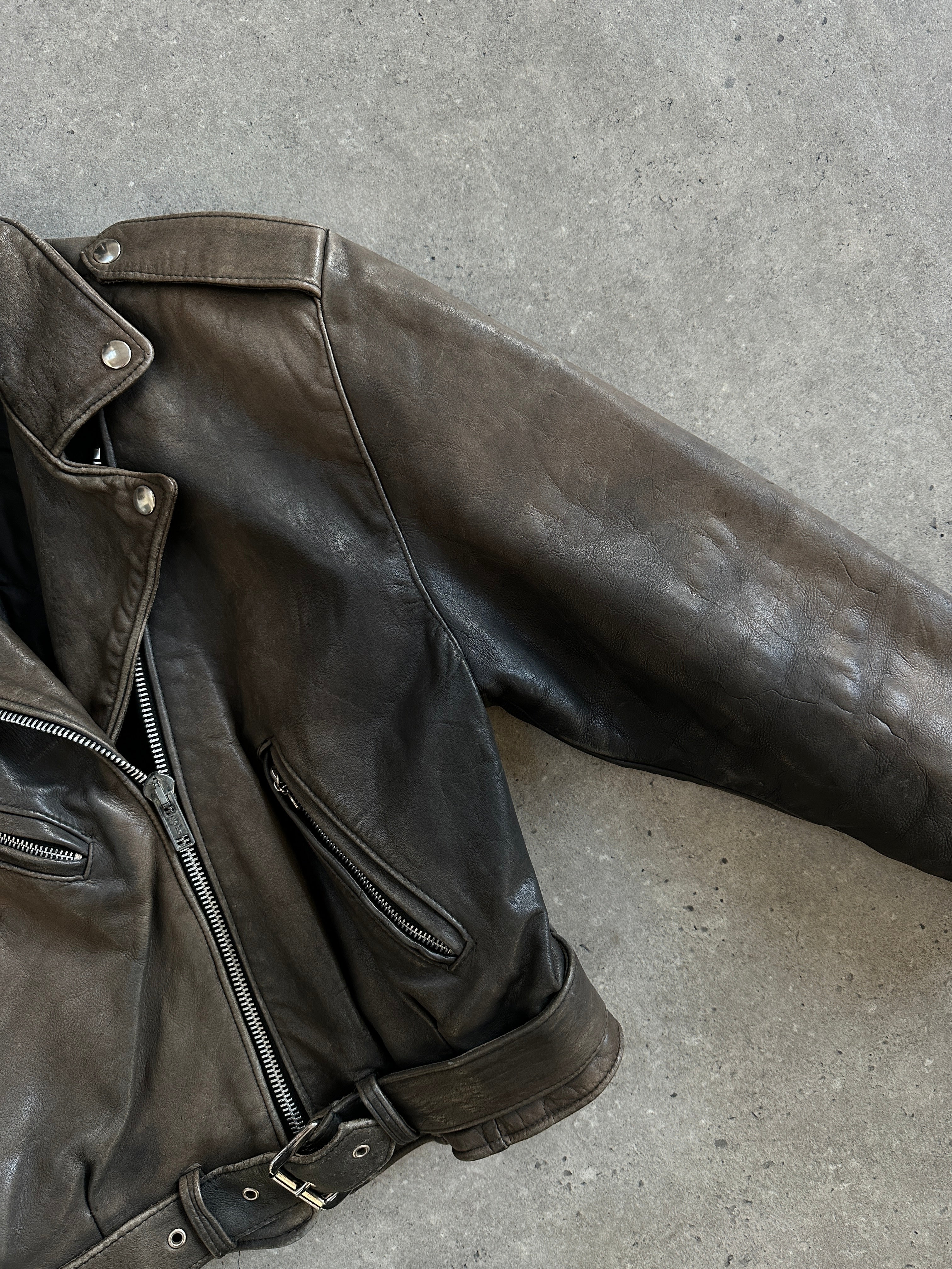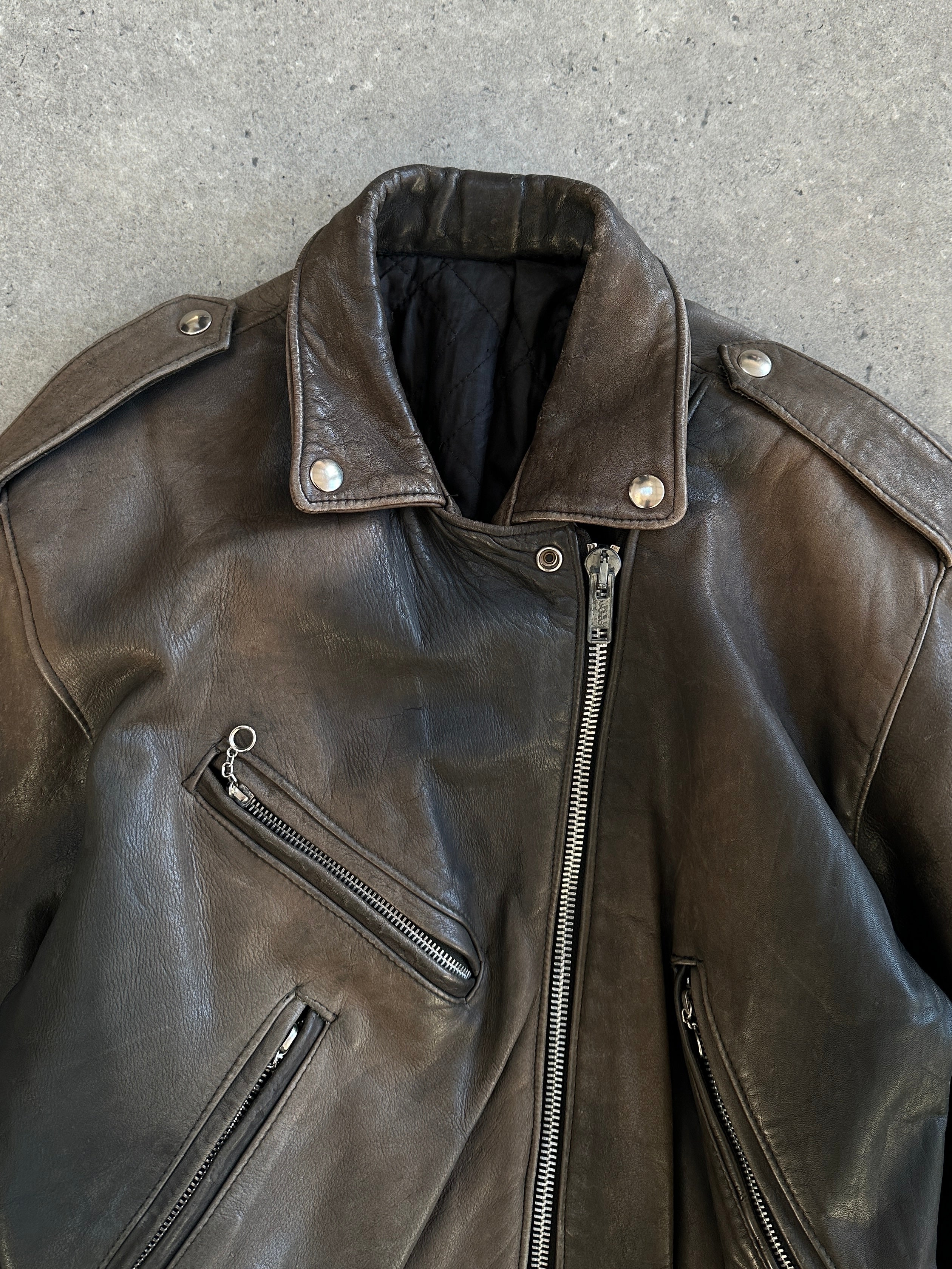 Vintage 1980s Distressed Leather Biker Jacket - S