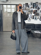 ~ Aviator boxy style cut with flap pockets and point collar