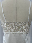 Vintage Japanese nylon slip with embroidered lace detailing and soft satin sheen - a delicate and timeless lingerie inspired piece