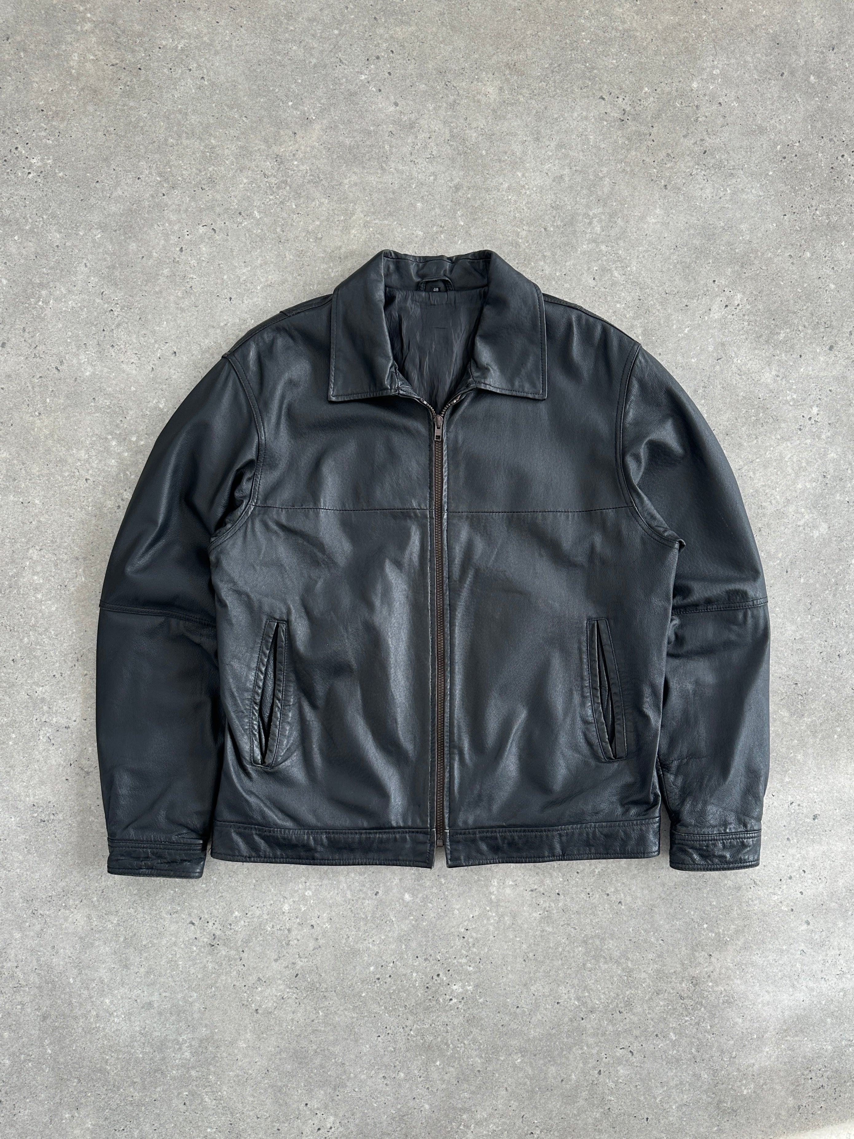 Vintage 1990s Minimal Leather Jacket - L/XL